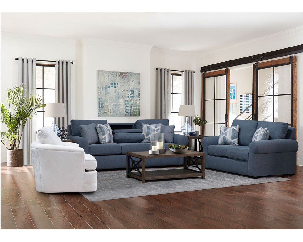 The Ailor 2654 Chair from our Ailor Collection is perfect for creating a classic, laid-back style in your living space. This chair features a roll arm silhouette and block leg, with top-stitched non-welted cushions. You can customize the look to fit your own personal style with our wide selection of fabric options. This chair is also available as a sofa with or without a drop-down tray, loveseat, ottoman, and sectional. With the Ailor 2654 Chair, you can create an inviting and comfortable atmosphere in any room.