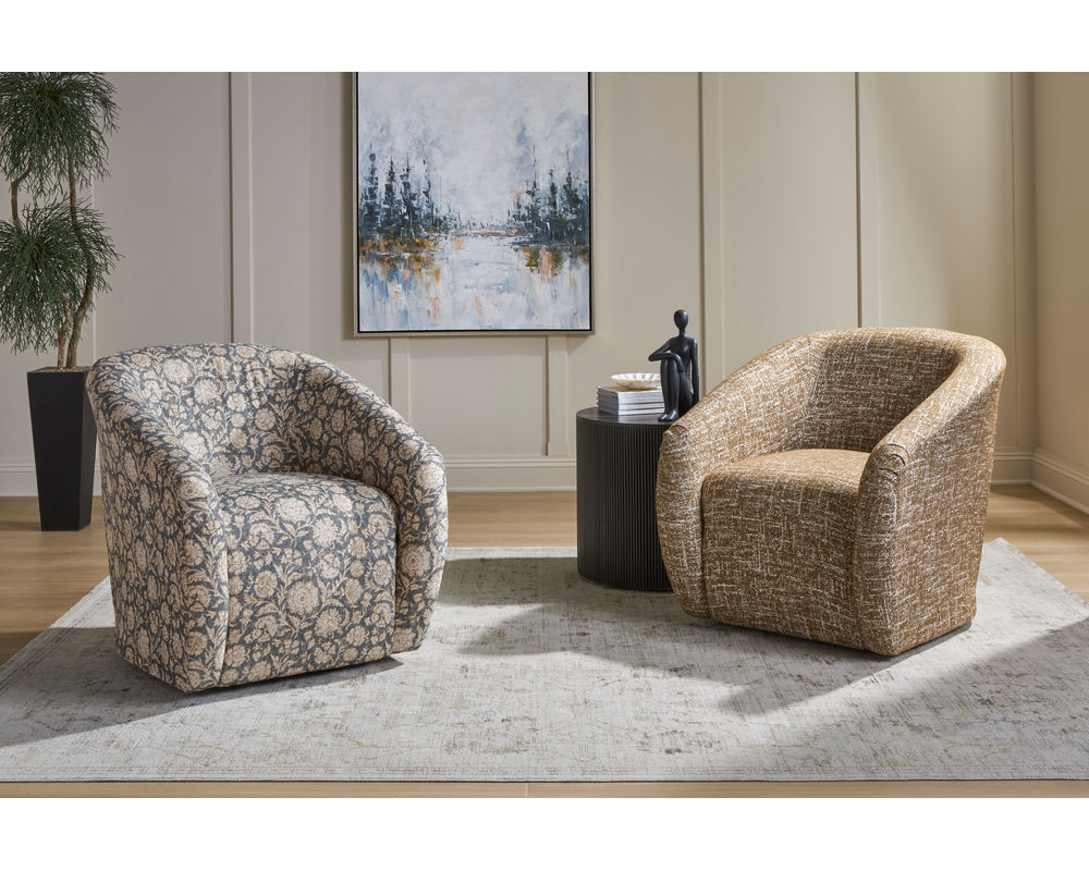The Airily Swivel Barrel Chair reinvents a timeless silhouette with fresh, contemporary appeal. Its sculpted, geometric form adds architectural presence, while the expertly tailored tight seat and back deliver a supportive and streamlined sit. Designed for versatility, the 360-degree swivel base allows for effortless motion—ideal for conversational seating arrangements, open-concept living, or simply turning toward your favorite view.