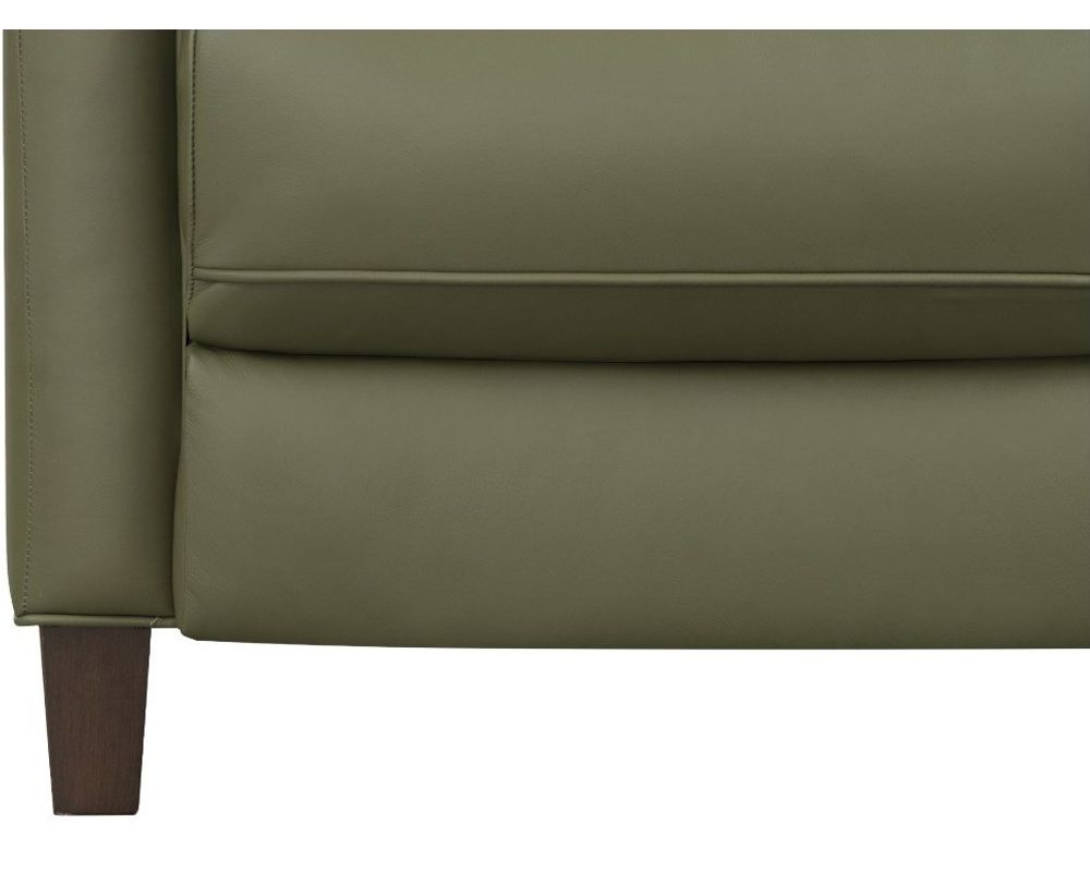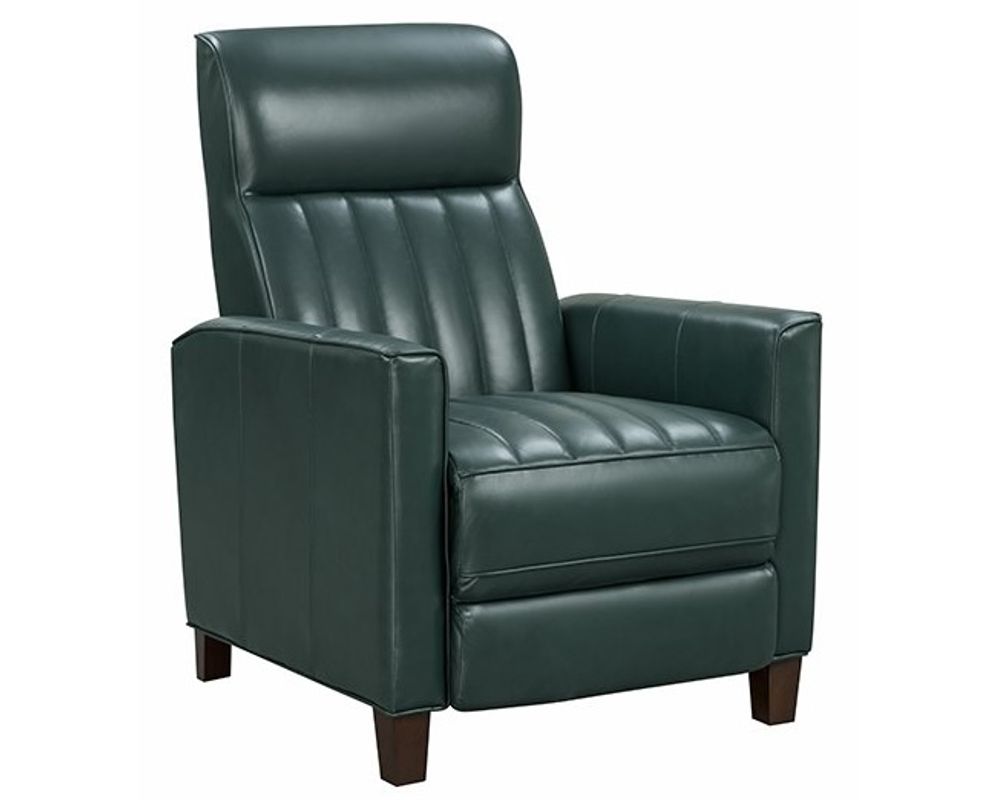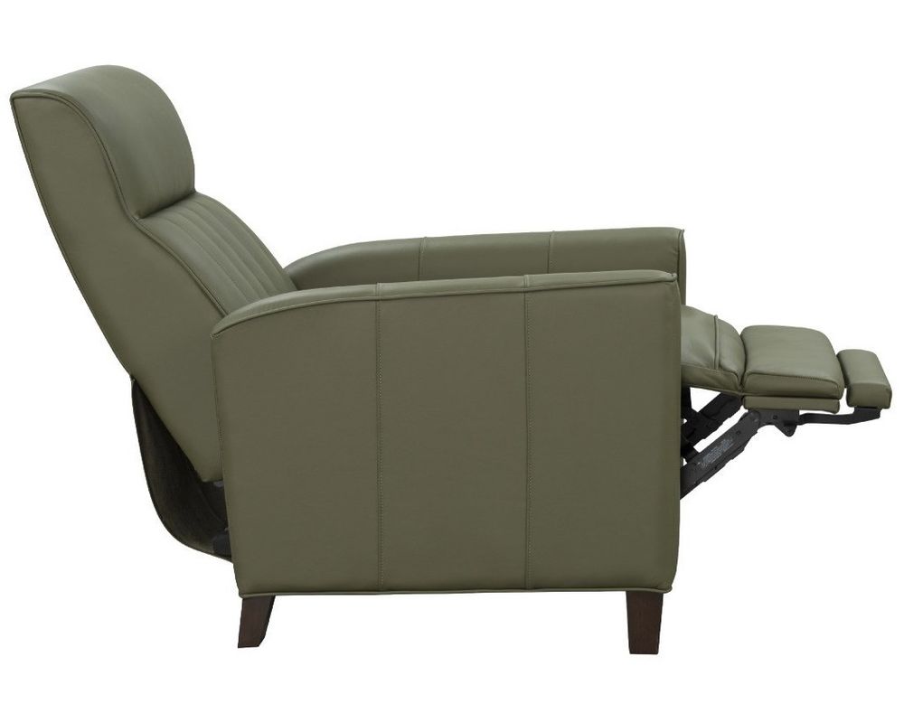 Crafted with 100% high-quality leather, this recliner is a testament to quality, elegance, and sophistication. The plushly padded headrest and footrest offer exceptional reclining comfort, making it the perfect spot to relax and unwind after a long day. The tapered wood legs in a dark walnut finish add a touch of warmth and complement the overall design of the recliner.