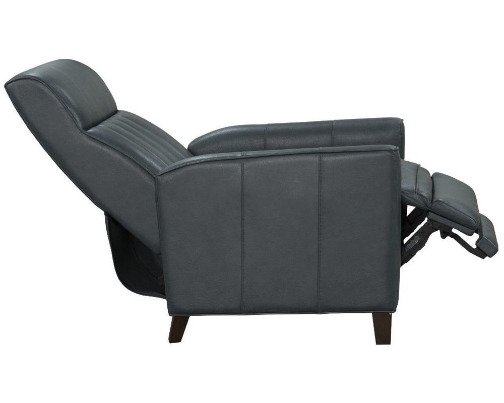 Crafted with 100% high-quality leather, this recliner is a testament to quality, elegance, and sophistication. The plushly padded headrest and footrest offer exceptional reclining comfort, making it the perfect spot to relax and unwind after a long day. The tapered wood legs in a dark walnut finish add a touch of warmth and complement the overall design of the recliner.