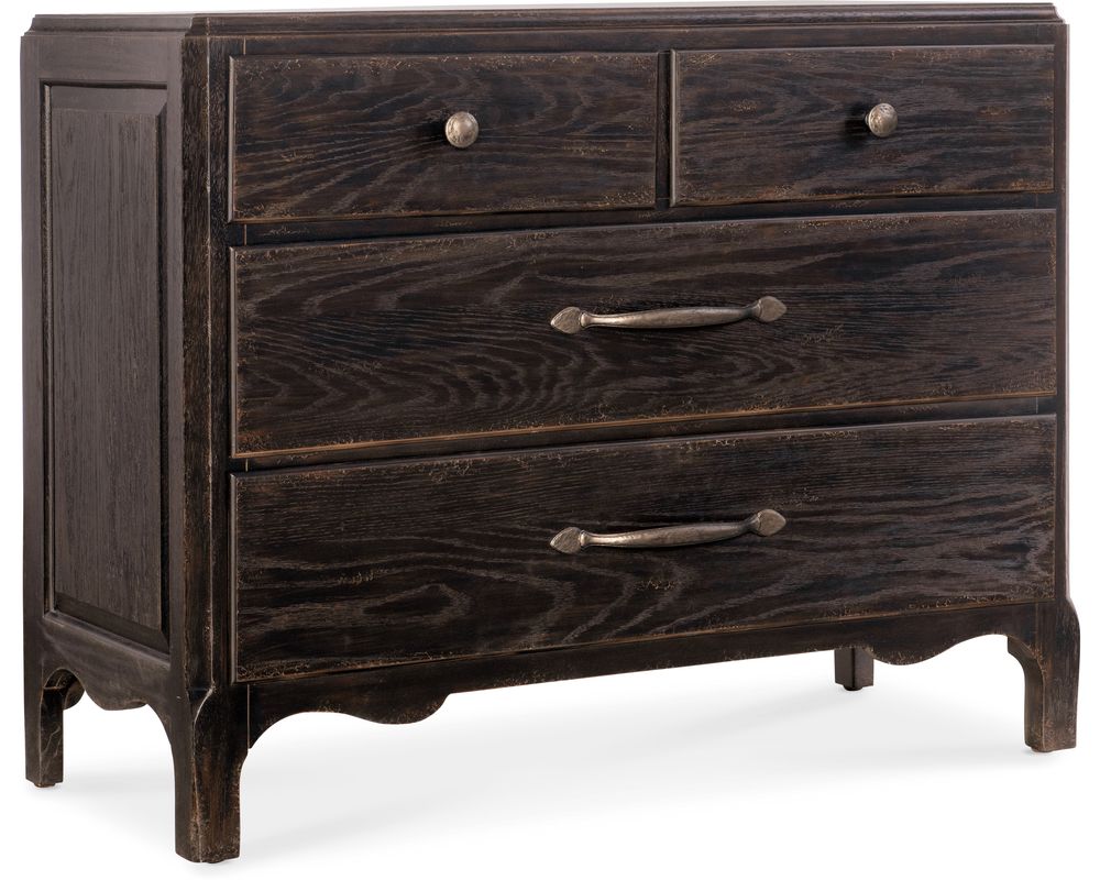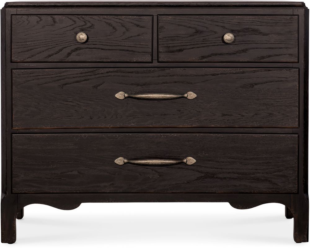 The chest boasts a scalloped base, adding a touch of elegance to its traditional design. Oak veneers combined with a solid-wood edge top ensure durability and long-lasting use. The Americana Bachelors Chest is not just a piece of furniture but a heirloom that will be cherished for generations to come.