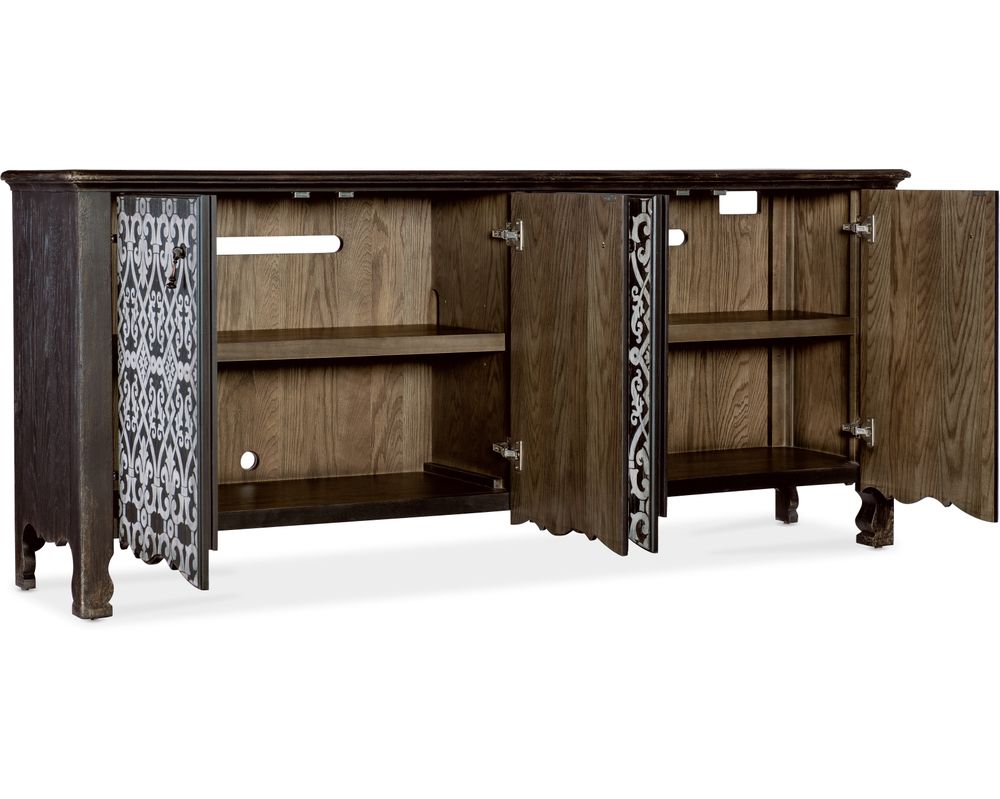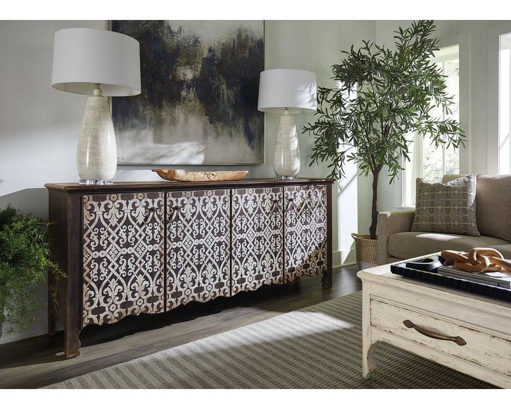 From Sofas and Sectionals.com: Introducing the Americana Entertainment Credenza, a stunning addition to your home that combines functionality and style. Made with high-quality materials, this credenza is designed to hold most 80" flatscreen TVs, making it the perfect choice for entertainment.