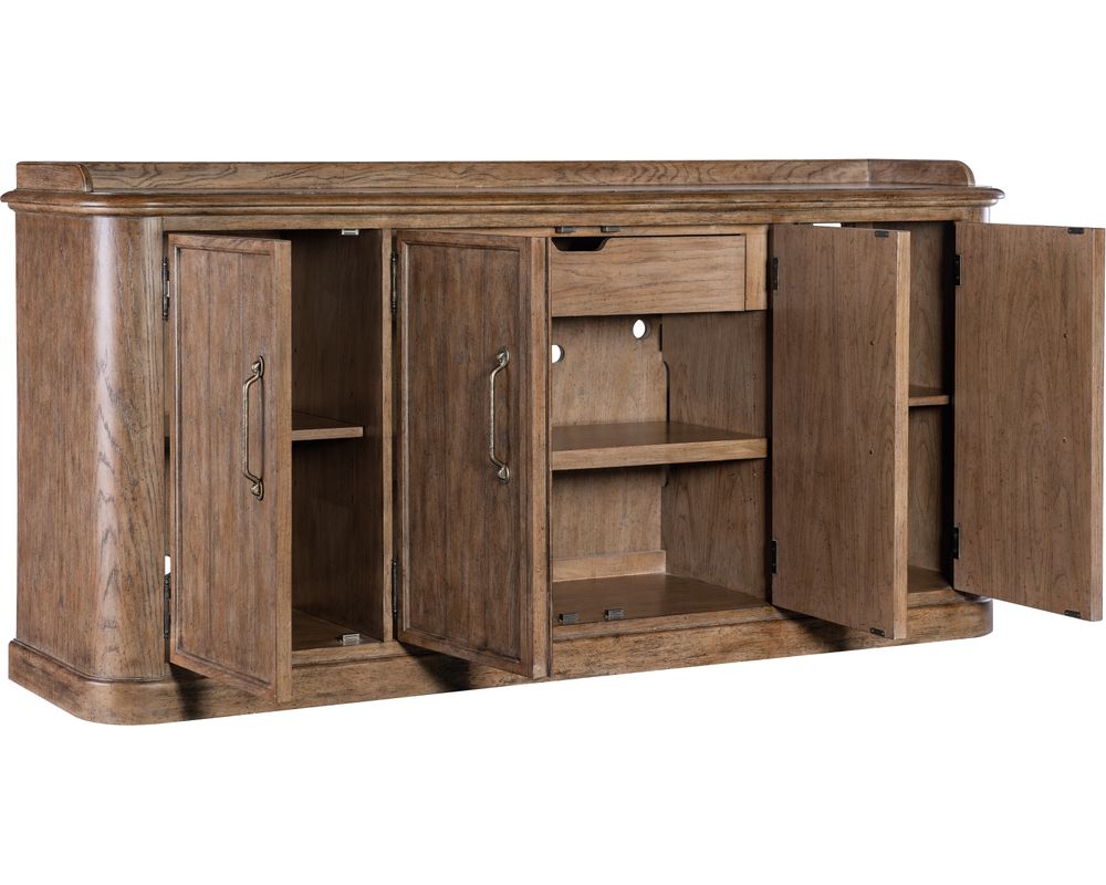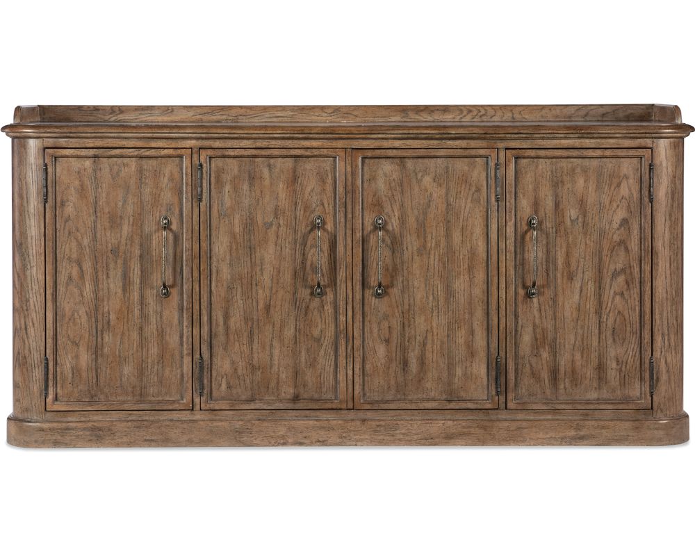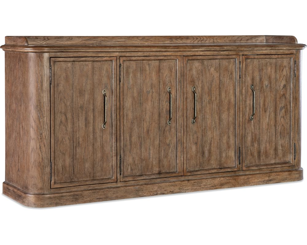 From Sofas and Sectionals.com: Introducing the Americana Four-Door Buffet, a stunning addition to your dining space that not only exudes style but also promises longevity. Crafted with high-quality oak veneers and a solid-wood edge top, this buffet is a durable investment that will stand the test of time.