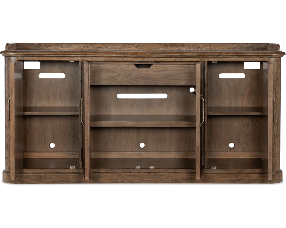 The buffet's back panel is ventilated and features wire management holes, making it perfect for storing and organizing your electronics. You can easily keep your cords and wires hidden and organized, creating a clutter-free space.