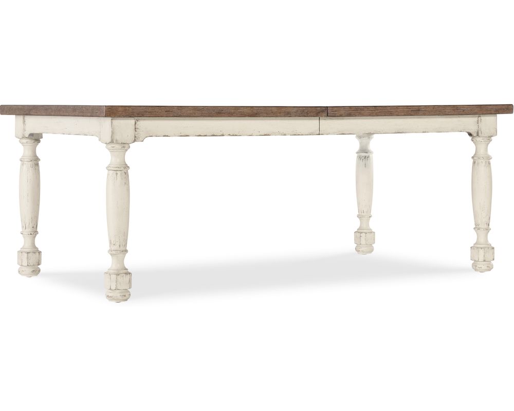 The table's two-tone finish adds a touch of elegance and style to any dining room. The warm wood tones and the crisp white finish create a beautiful contrast that complements any decor.