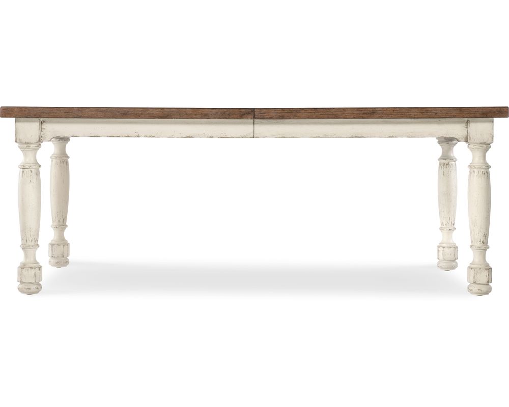 But the Americana Leg Dining Table's versatility doesn't stop there. Without the leaf, the table can accommodate up to two coordinating benches and two armchairs or up to four coordinating benches and two armchairs with the leaf in place. This makes it suitable for smaller and larger gatherings or everyday use.