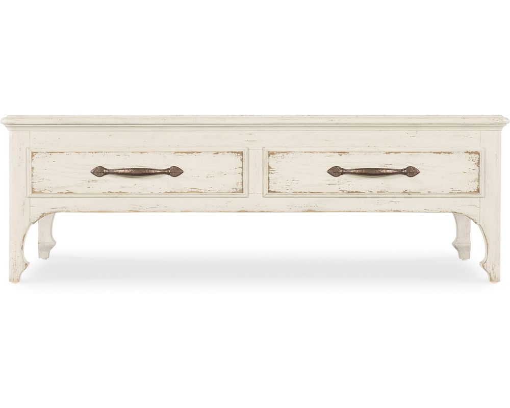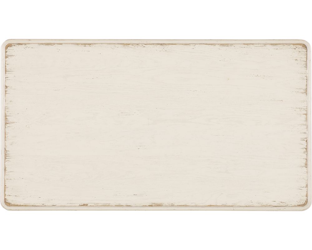 The Americana Daisy finish is a stunning time-worn white finish that adds a vintage touch to the table. Made from cathedral oak veneers, this finish represents the natural wear and tear that comes with pieces passed down through generations. The result is a beautiful, lived-in look that reveals the rich oak character underneath. The metal alloy bar pulls in an antique bronze finish, adding a touch of contrast and elegance to the overall design.