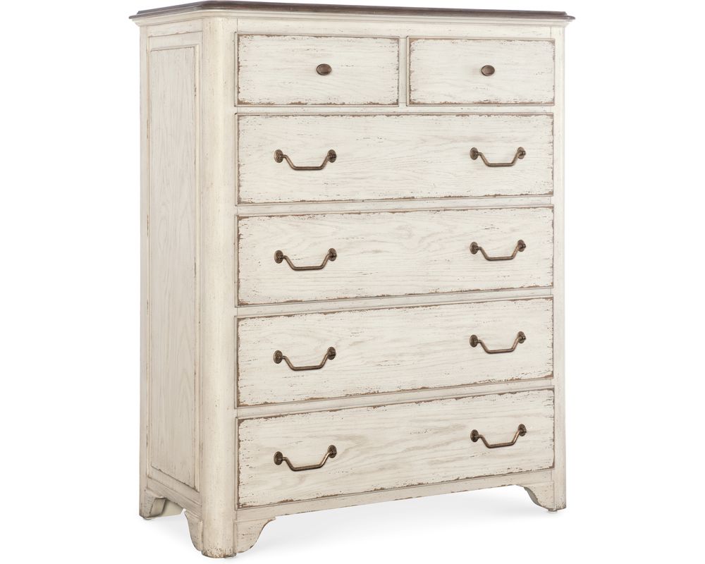 From Sofas and Sectionals.com: The Americana Six Drawer Chest will introduce rustic elegance to your bedroom. This chest has a six-drawer design and ample storage space for all your clothing and accessories. Each drawer is equipped with self-closing mechanisms, ensuring smooth and quiet operation. The top drawers are lined with black felt, making them perfect for storing delicate jewelry or lingerie. The bottom drawer is lined with cedar, providing a natural and aromatic way to protect your garments from moths and other insects.