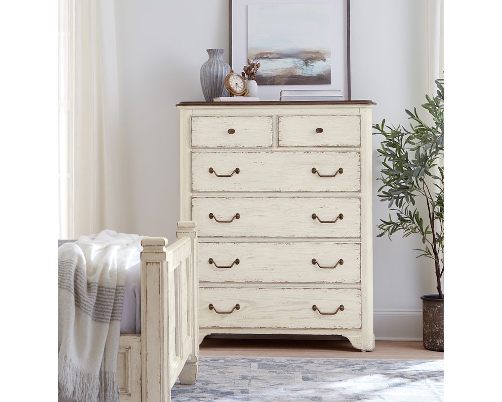 Add a touch of vintage charm and practicality to your bedroom with the Americana Six Drawer Chest. Its six spacious drawers and unique two-tone finish make it a beautiful and functional addition to any bedroom.