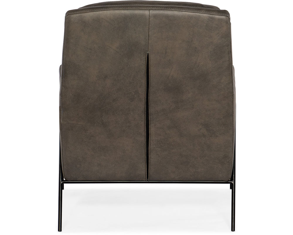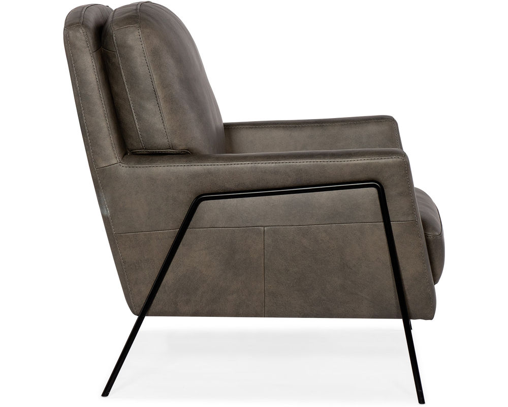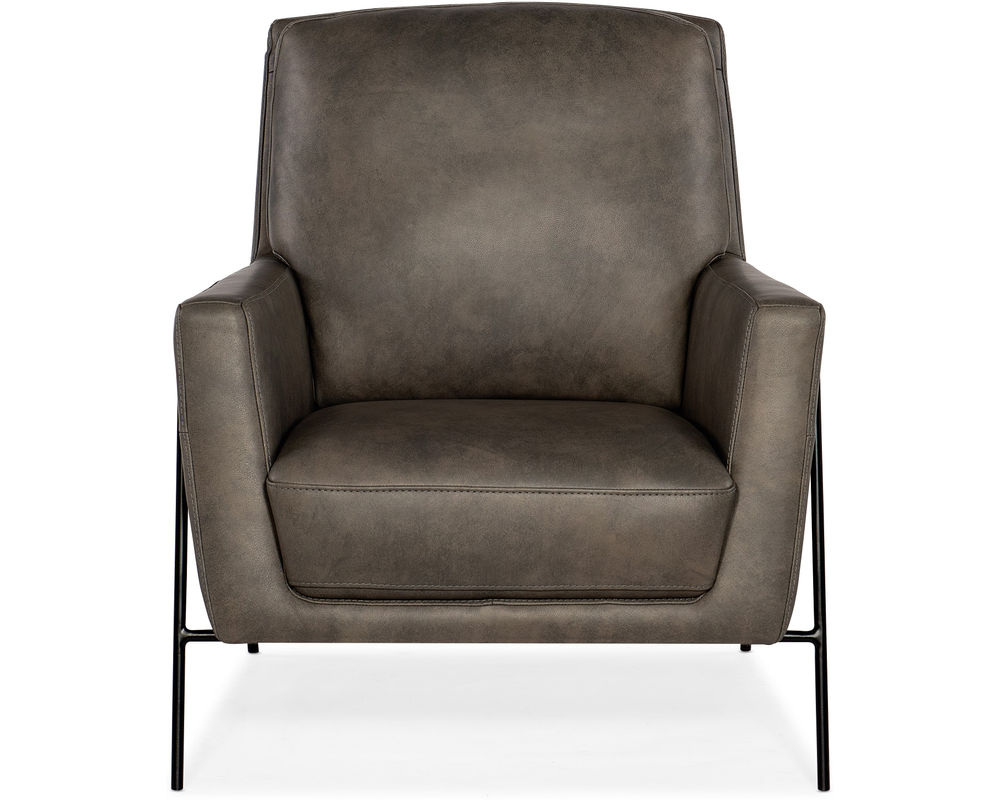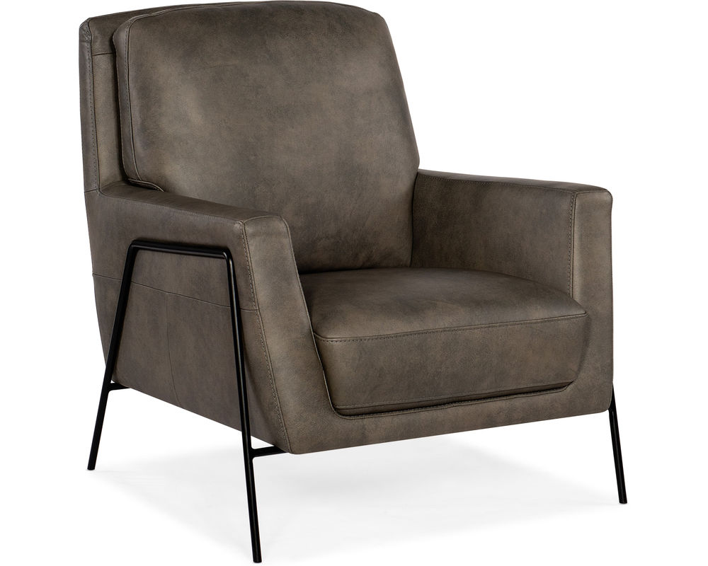 Swanky and stylish, the Amette Club Chair blends sleek design with upscale comfort. Its sculptured silhouette is supported by a slender black metal frame and upholstered in luxurious Anker Sand top grain leather — a stunning statement for any modern space.