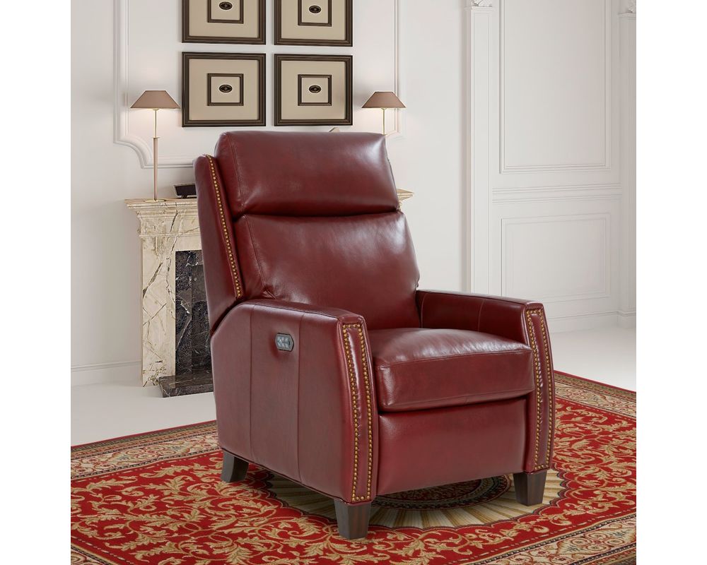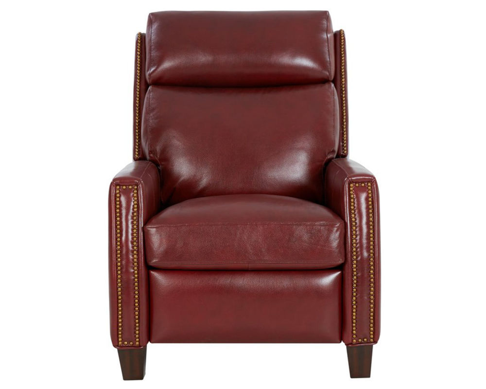 For added convenience, this recliner features a footrest extension, allowing you to stretch out fully and relax. The nailhead trim accents add a touch of sophistication, while the tapered wood legs, finished in a warm mahogany finish, add a classic touch to the design.