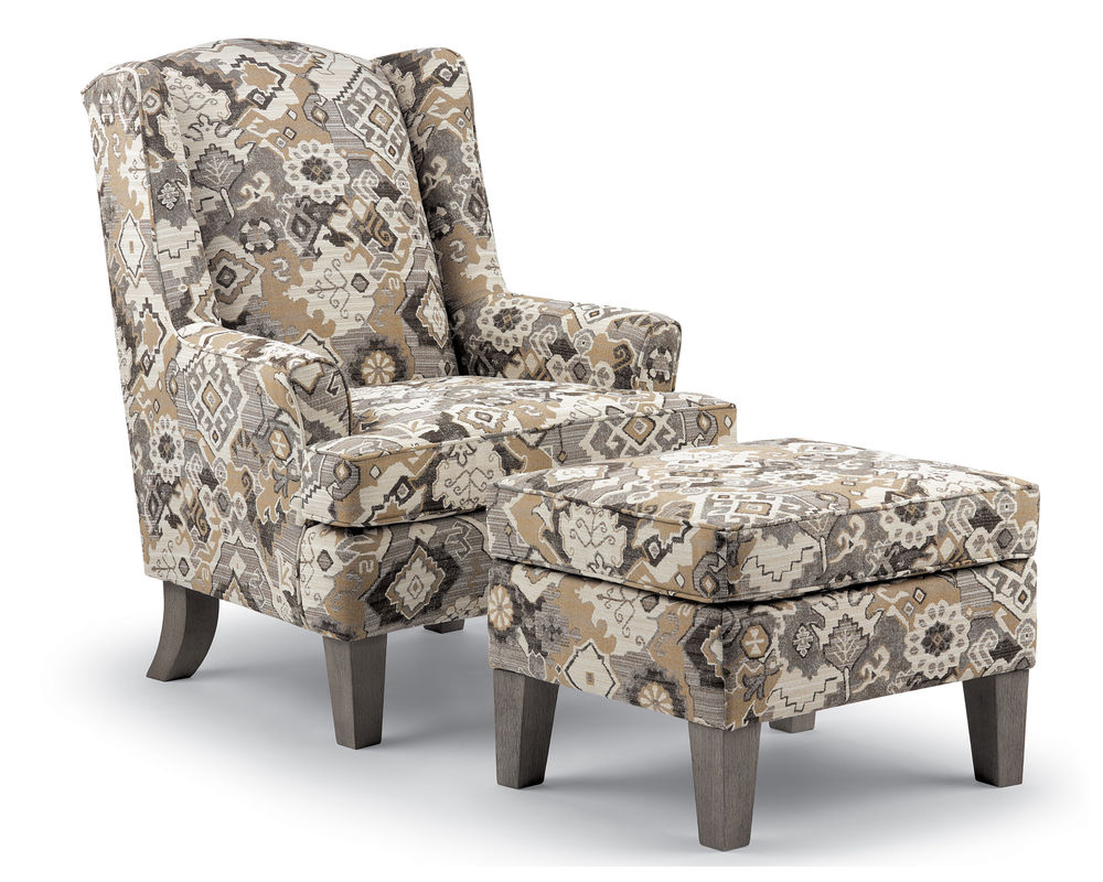 The Andrea Wing Chair also comes with a matching ottoman, making it the perfect addition to any living space. Whether you're looking to create a cozy reading nook or an inviting conversation area, this chair and ottoman combination will provide you with a comfortable spot to unwind. With its timeless design and classic beauty, the Andrea Wing Chair is sure to be a favorite for years to come.