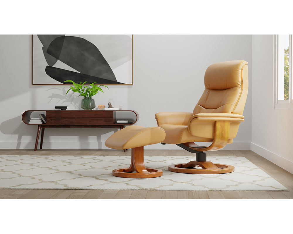 Introducing the Anne R Swivel Pedestal Reclining Chair from Fjords—a refined blend of Scandinavian design, engineered comfort, and timeless style. Upholstered in premium top-grain leather, the Anne R makes an immediate visual statement while delivering exceptional ergonomic support from head to toe. Every detail is thoughtfully crafted to ensure the chair looks as good as it feels.