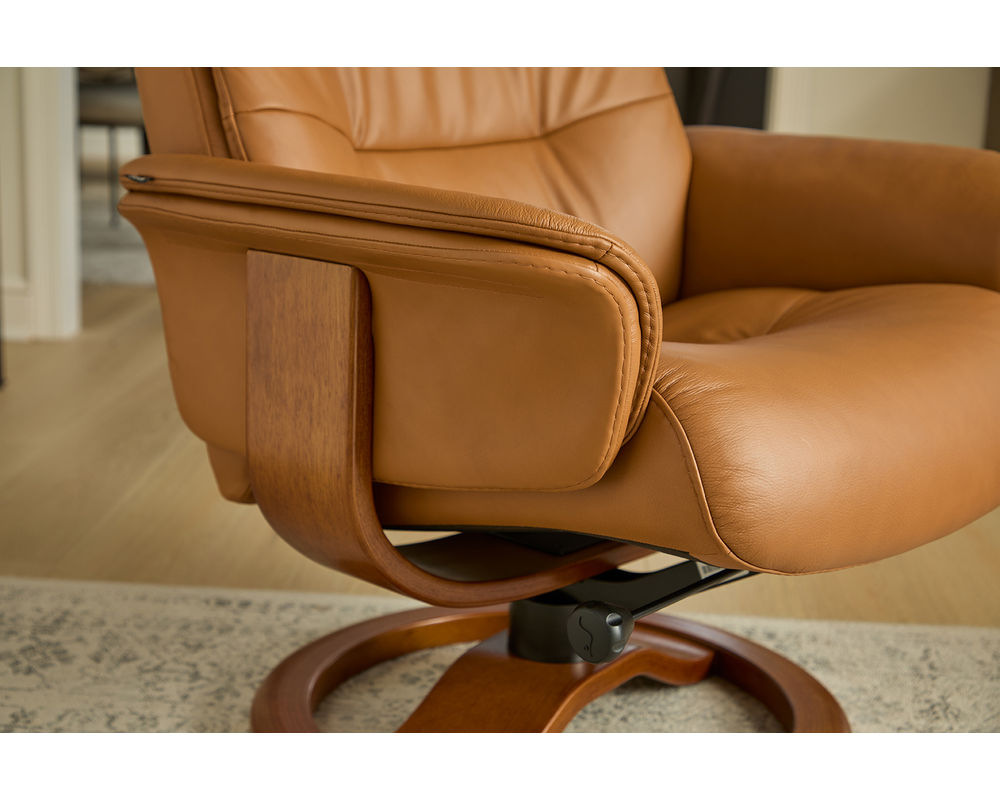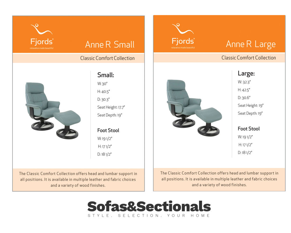 Available in small and large sizes, the Anne R accommodates different body types with ease. Fjords’ renowned craftsmanship, the Anne R Swivel Pedestal Recliner is an investment in comfort, style, and everyday well-being.