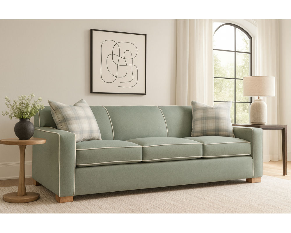 The Arcadia 81" Sofa brings casual-transitional style to life with its crisp track arms, tailored silhouette, and comfortable deep seating. Designed for both everyday relaxation and timeless appeal, it features fiber-fill back cushions and Comfort Plus high-resilience foam cores that provide support, durability, and consistent comfort. Two blendown throw pillows add softness and a touch of style, while the customizable fabrics and wood finishes allow you to create the perfect look for your home. With its block legs and crafted-in-USA construction, the Arcadia Sofa is equal parts style, comfort, and quality.