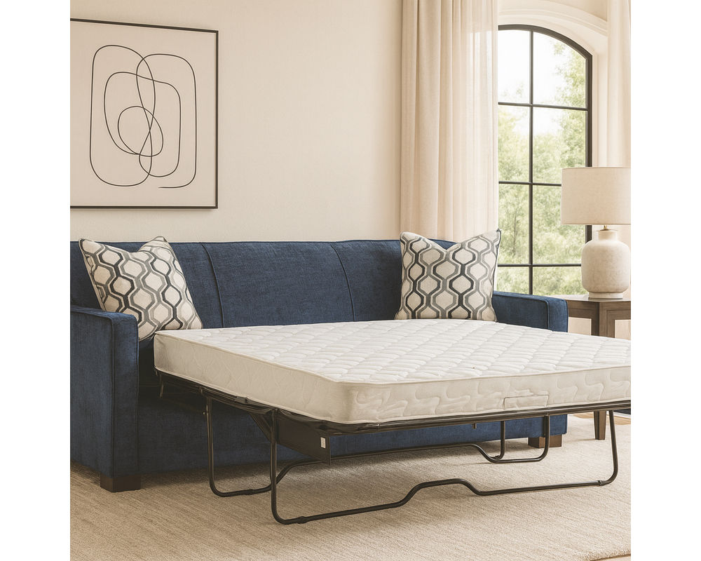 The Arcadia Queen Sleeper is the perfect balance of everyday style and overnight convenience. With its clean track arms, tailored silhouette, and casual-transitional design, it’s a versatile piece for any home. By day, it delivers lasting comfort with fiber-filled back cushions and Comfort Plus high-resilience foam seat cores. By night, it transforms into a queen-size bed with your choice of three premium mattress options—innerspring, memory foam, or the luxurious Air Dream mattress—so guests can enjoy restful sleep. Complete with two blendown accent pillows and endless fabric and wood finish options, the Arcadia Queen Sleeper is a stylish and functional centerpiece for your living space.