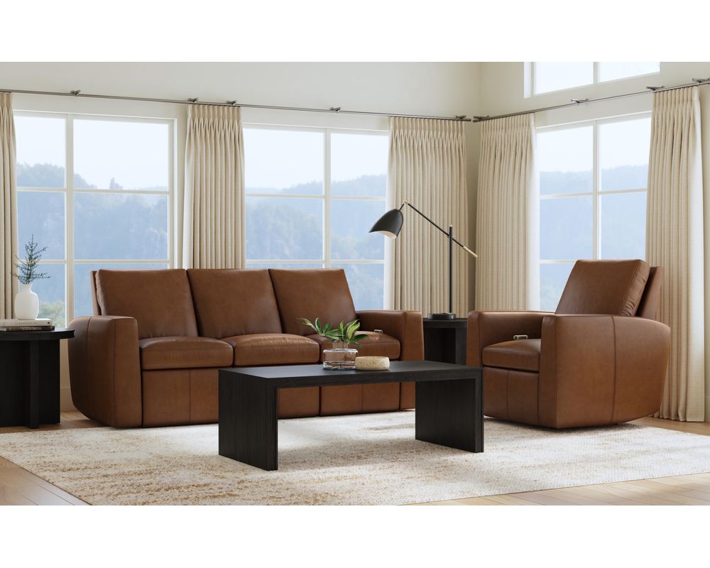 • Upholstered in two color choices of a high-quality, top-grain, semi-aniline leather that is durable for everyday use