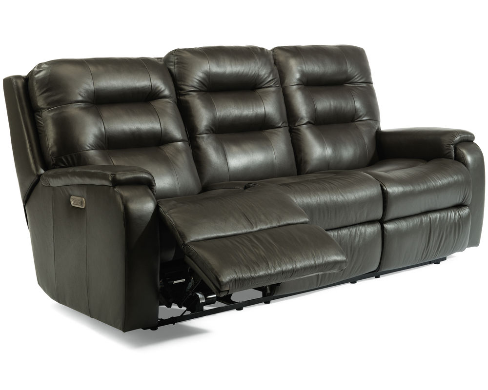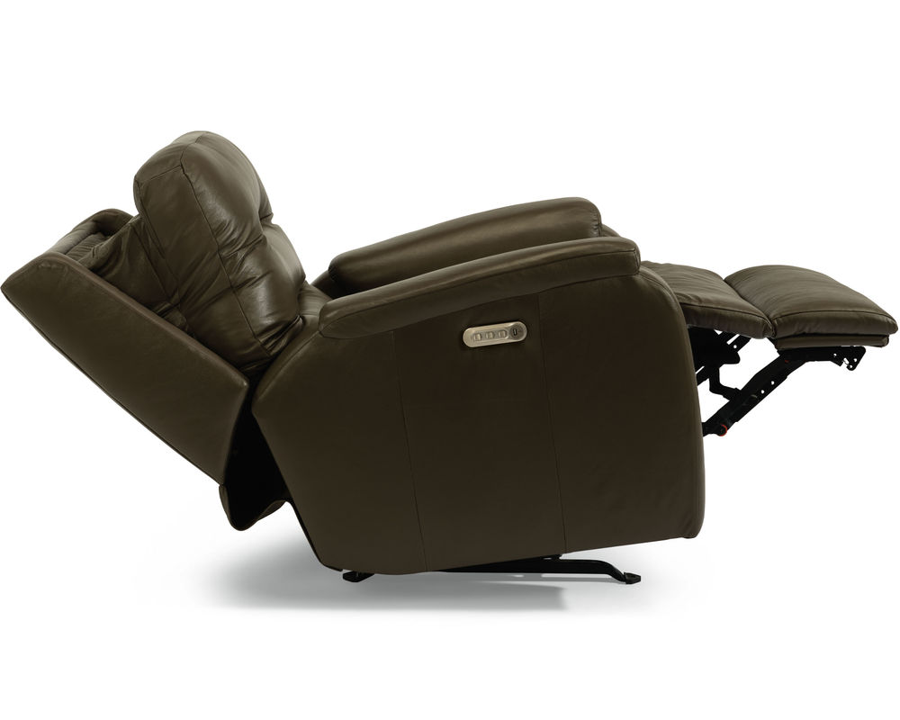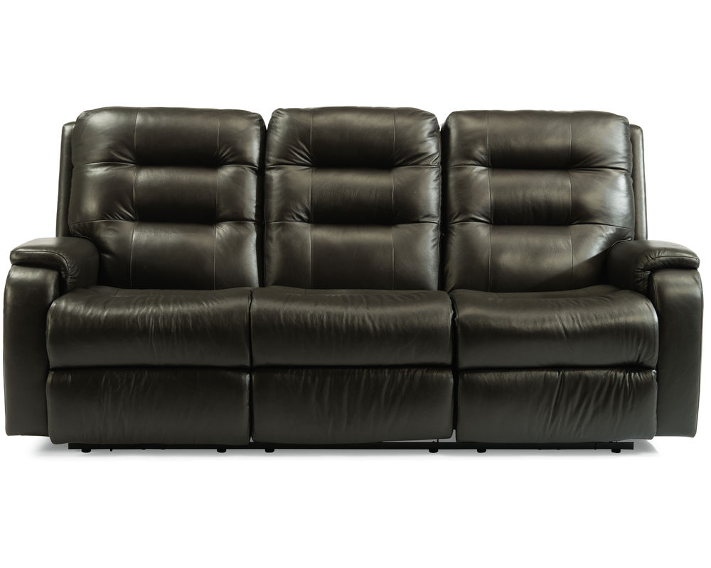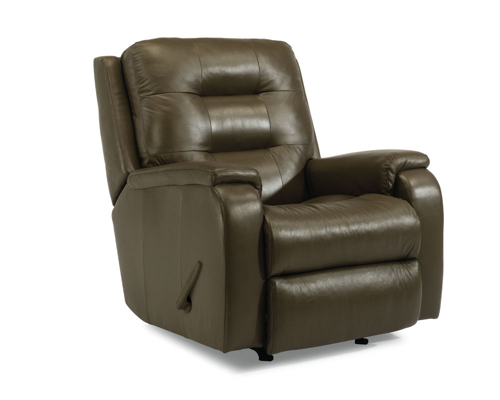 The Flexsteel Arlo Recliner is the perfect addition to any home. With a simple pull of a handle, you can recline and relax comfortably. It features pull-tufted, triple-divide back cushions that look tailored and provides support for your head, neck, and lower back. Rounded pad-over track arms have a refined aesthetic and reduce pressure on your forearms. The contoured seat is reinforced by the patented DualFlex Spring System™, which combines firmness with flexibility. You can choose from over 20 options of cleanable, durable leather to create a look that enhances your living space. Now you can kick back and unwind in total comfort with the Flexsteel Arlo Recliner. 100% leather everywhere your body touches.