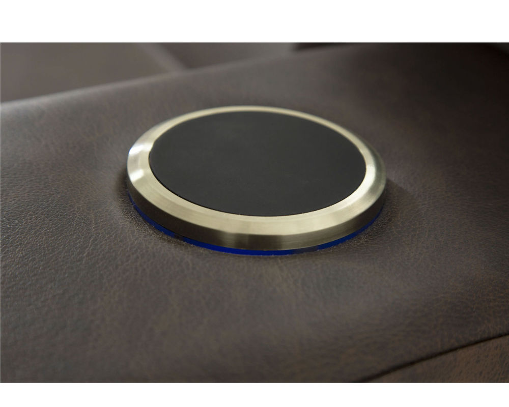 Power recline with a button switch featuring integrated USB charging finished in an attractive brushed metal
