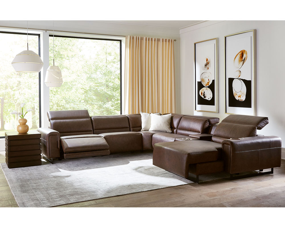 The Sectional also includes a left—or right-facing chaise lounge with power recline and headrest features. This allows you to fully stretch out, take a comfortable nap, or watch your favorite movie in a reclined position.