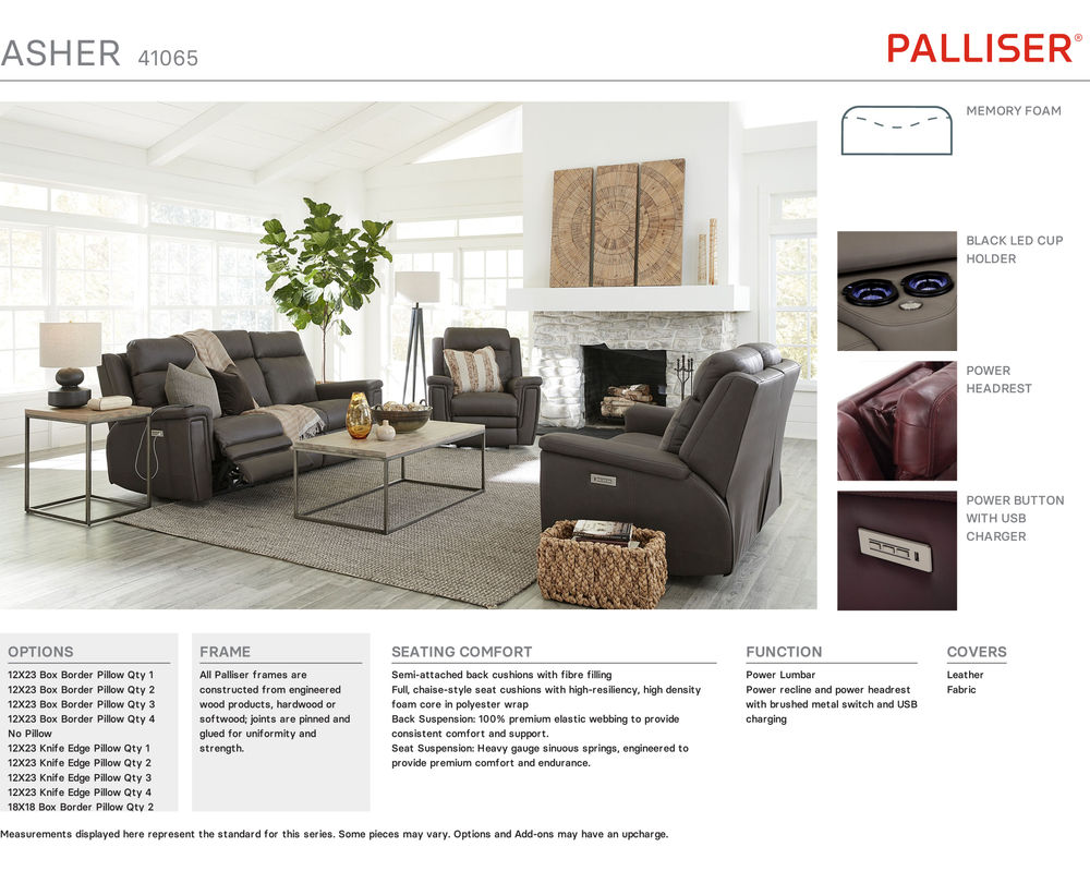 Asher 41065 Power Headrest Power Reclining Sofa (Made to order)