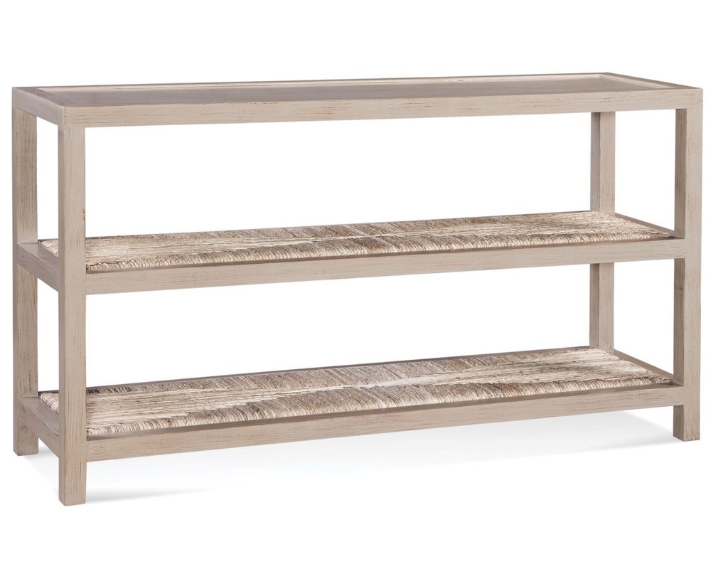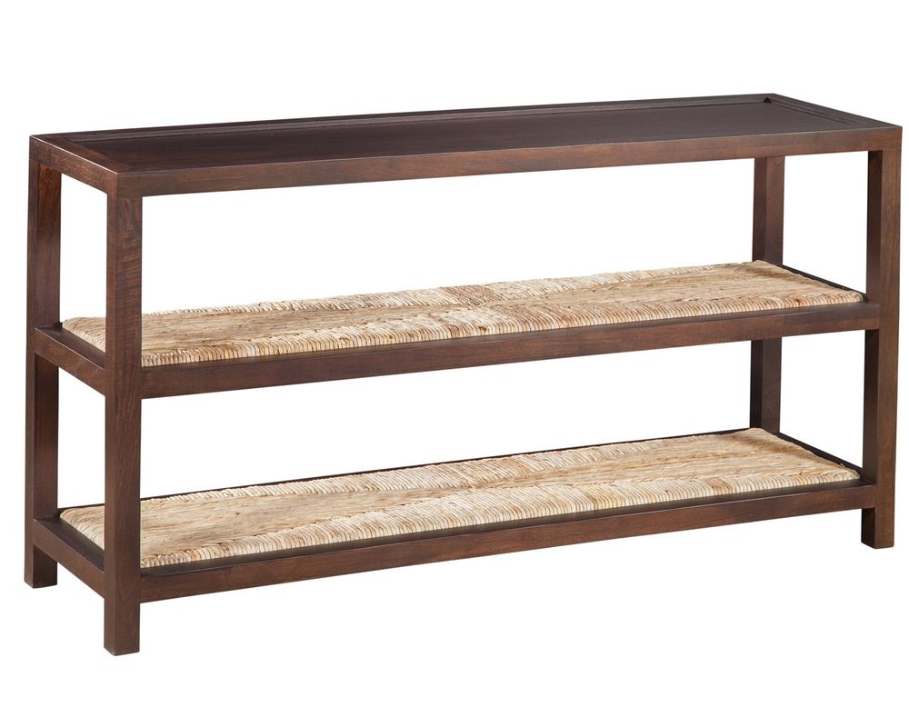 Console Table – A long and narrow design with two woven lower shelves, providing generous storage and display space for entryways, hallways, or behind a sofa.
