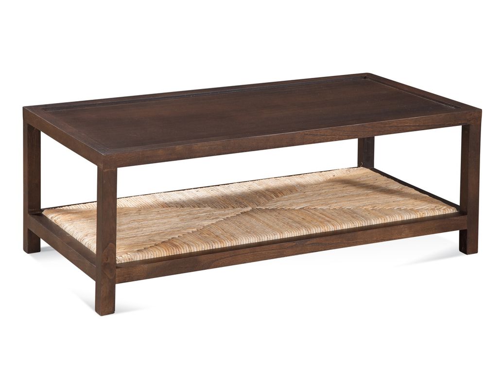 Cocktail Table – A rectangular centerpiece with a smooth top and woven lower shelf, perfect for entertaining or everyday use.