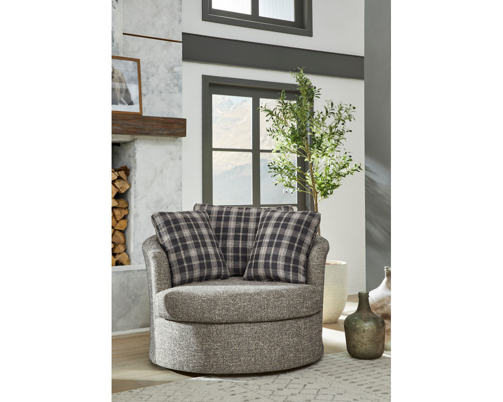 Curl up and fall in love with the Astro Oversized Swivel Chair. Designed for grandeur comfort, its spacious silhouette is perfect for lounging, stretching out, or cuddling up. Three oversized loose pillow backs and arm cushions invite you to sink in, while the whisper-smooth 360-degree swivel motion adds relaxation with every turn.