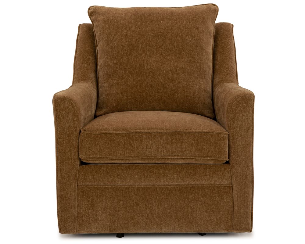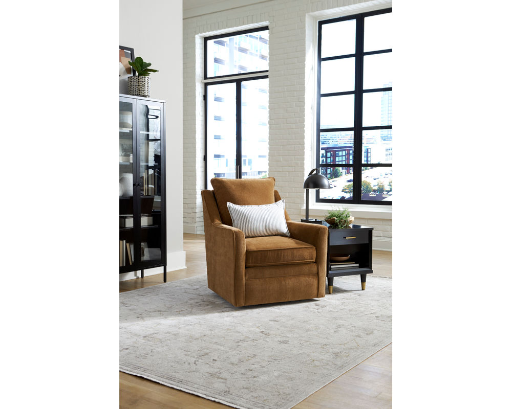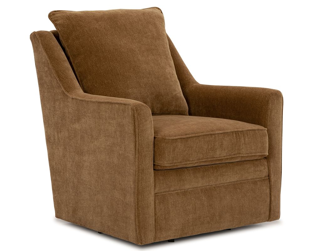 The Aubrey Swivel Chair blends timeless design with modern functionality. Its smooth sheltered arms, accented with piped seams, provide subtle sophistication, while the tailored pillow back offers soft support. With 360-degree swivel action, Aubrey keeps you comfortably engaged from every angle—perfect for open floor plans, reading corners, or conversational seating areas.