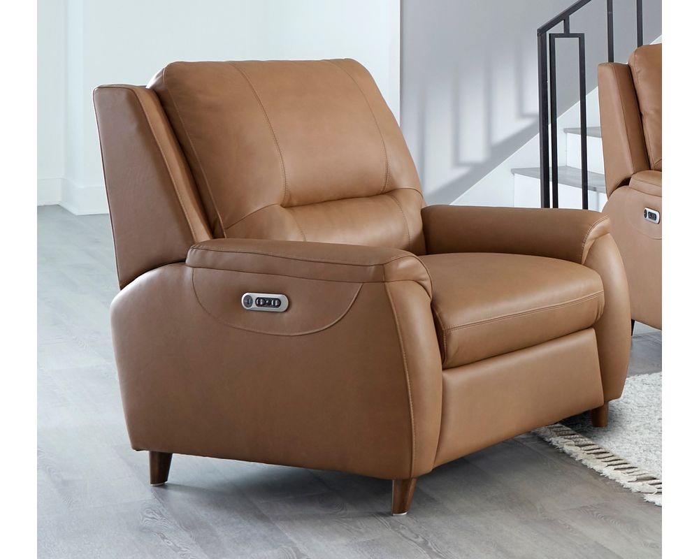 Experience the ultimate in comfort and luxury with the Austin Power Recliner. This premium recliner is designed with your comfort and convenience in mind, featuring independently operating power headrests and supple leather upholstery with a custom match. The sleek and modern high-leg design in a warm walnut finish not only adds a touch of contemporary elegance to any room but also elevates the sophistication of your living space.