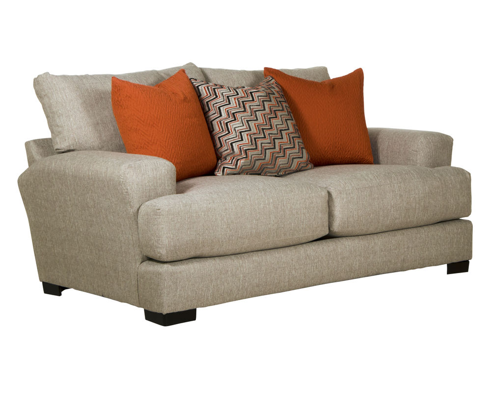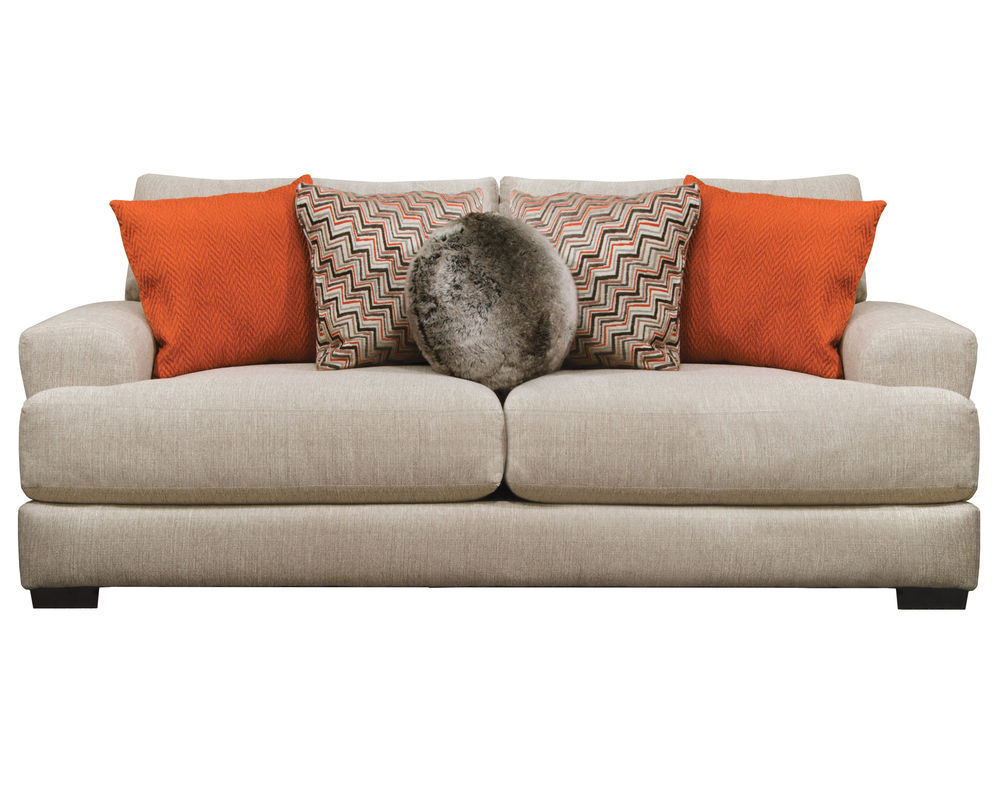 With its neutral colors and attractive modern shape, the Ava 90" Sofa by Jackson is easily able to fit into your transitional or modern living space without clashing with the existing design styles. The Ava 90" Sofa features a back with two cushions propped up against it in a three-over-three cushion style with its two large, wide seat cushions. This style provides two or more people the ability to get comfortable with ease. The arms that sit on either side of the sofa are ultra-wide and thick track arms that offer you the room you need to get cozy against them. The base of the Ava 90" Sofa is outlined clearly in order to offer a bit of detail and further the linear nature of the sofa. The piece is supported by two square-shaped feet.