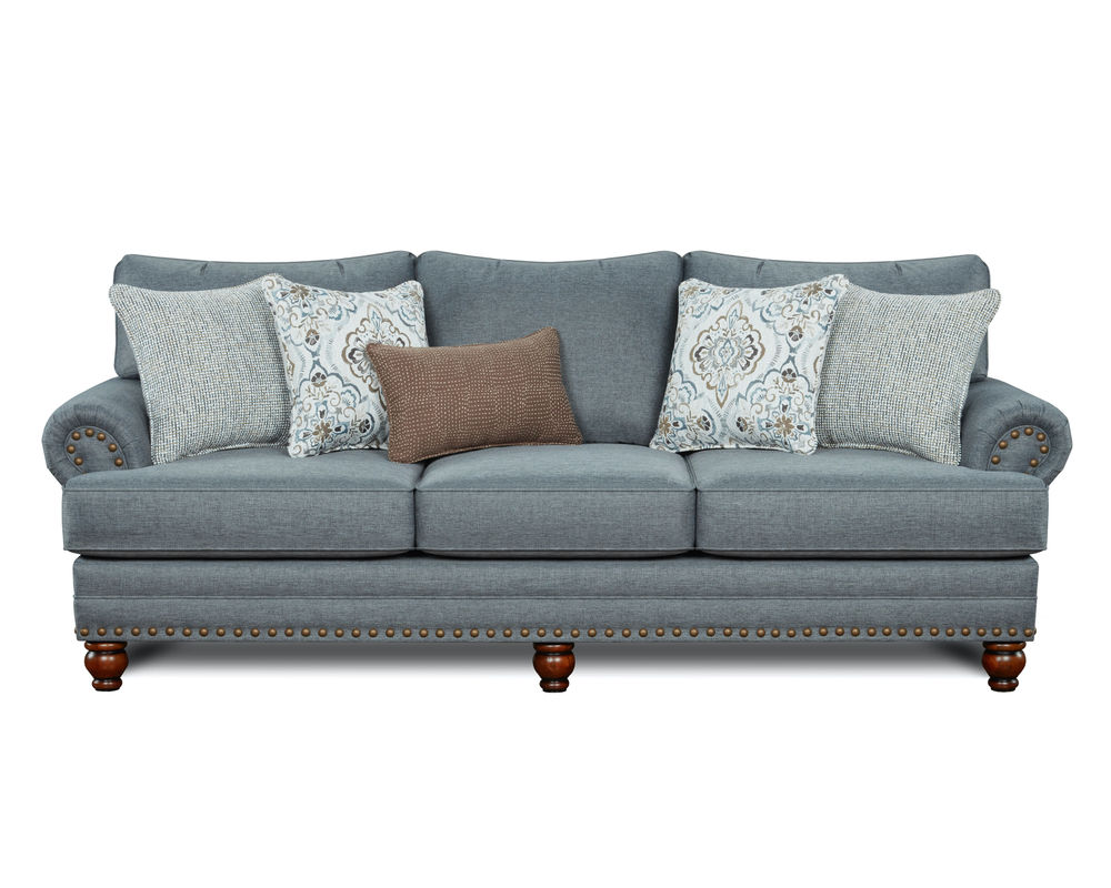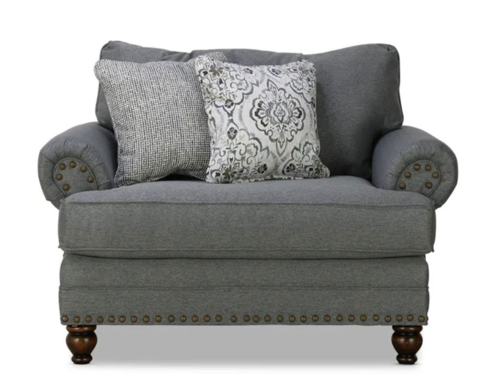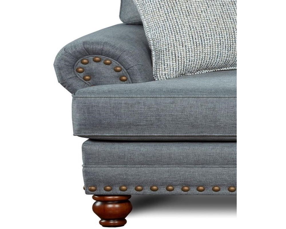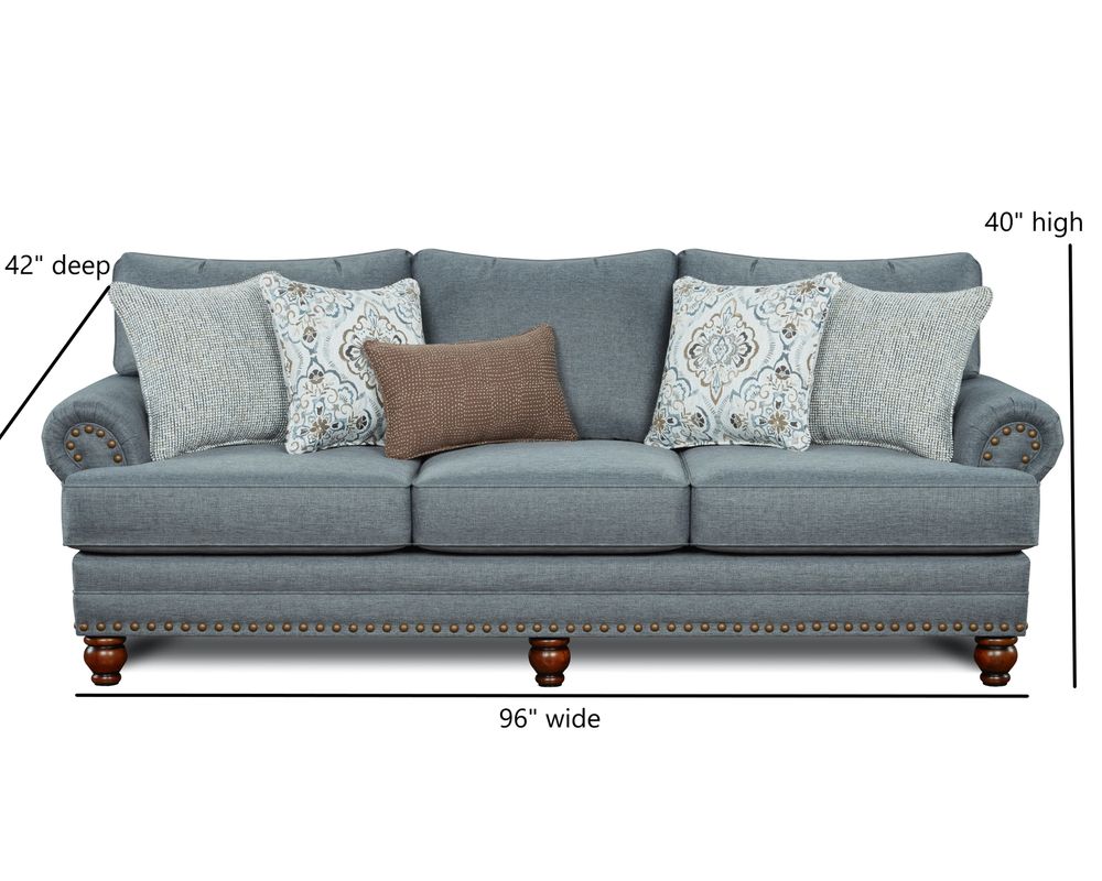Introducing the Bates Charcoal 96" Sofa, a luxurious and stylish addition to any living room. This Sofa boasts an array of eye-catching details, from its exquisite nailhead trim to its flared rolled arms with a five-knuckle pleat. The two-tone sculpted wooden legs add a touch of sophistication to the overall design.