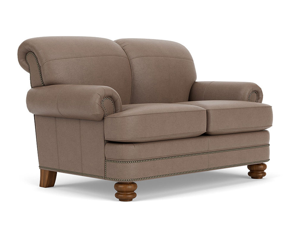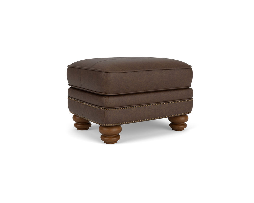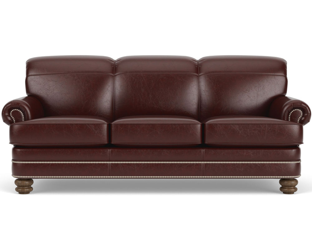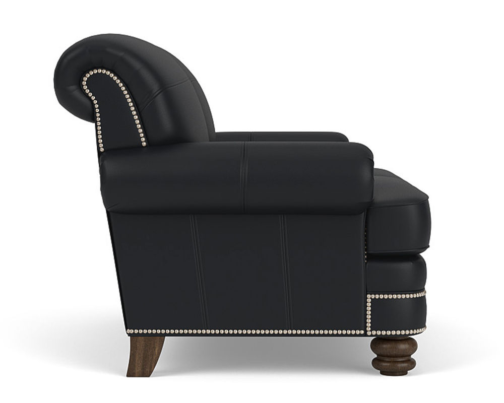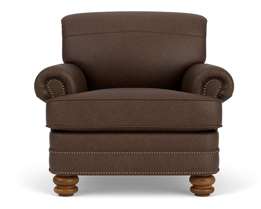 The Flexsteel Bay Bridge 3790 Nailhead Leather Chair is the perfect combination of style and comfort. This classic piece of furniture features timeless details such as rolled arms, a rounded front rail, welt cord-lined back and side panels, and round bun feet. Plus, it is available in over 50 top-grain leathers, so you can customize it to your exact specifications. If you're looking for a traditional piece of furniture with a hint of modern flair, the Flexsteel Bay Bridge 3790 Nailhead Leather Chair is the perfect choice. The chair also features nailhead trim to add a touch of sophistication. With free shipping included, you can bring a piece of history into your home. Make a statement with the Flexsteel Bay Bridge 3790 Nailhead Leather Chair.