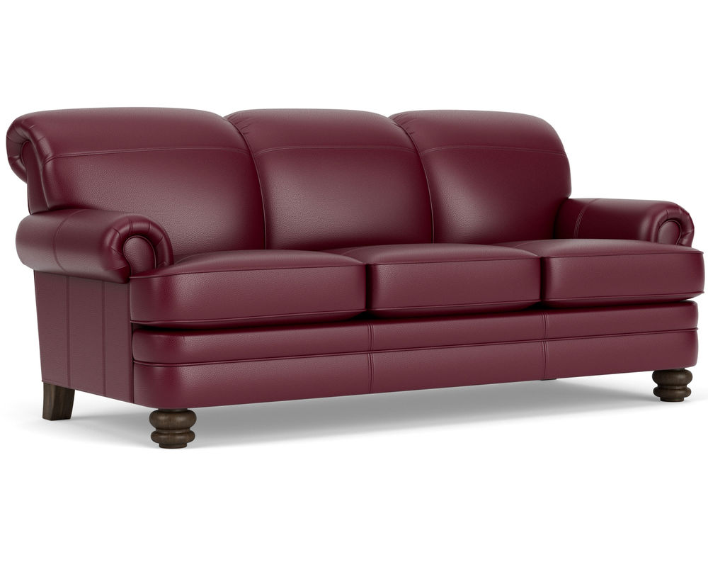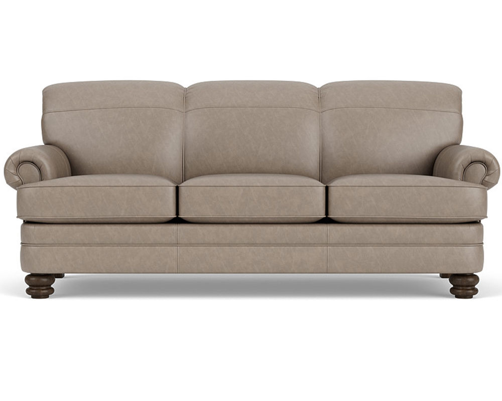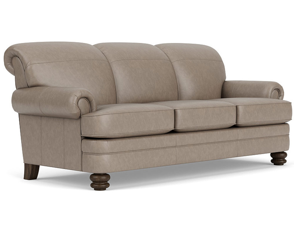 The Flexsteel Bay Bridge 3790 Leather Sofa combines style and comfort perfectly. This timeless piece of furniture features tightly rolled arms, a rounded front rail, welt cord-lined back and side panels, and round bun feet that make a statement in any living space. You can customize your sofa to your exact specifications by choosing from over 50 top-grain leathers. Plus, free shipping is included with your purchase.