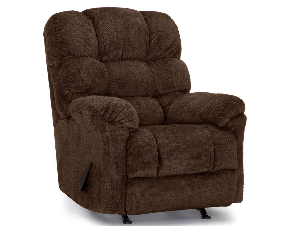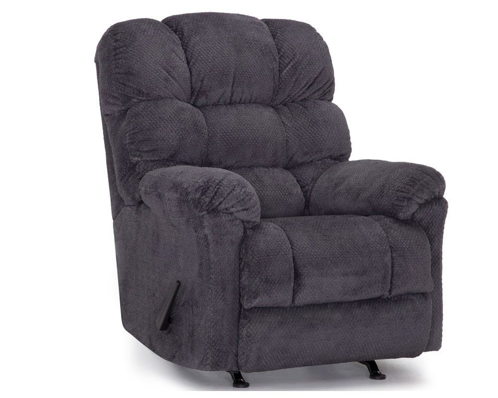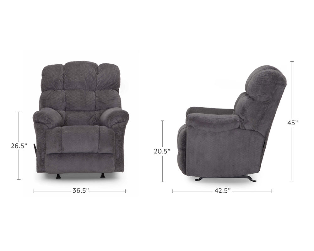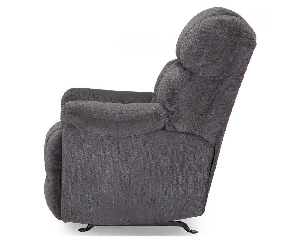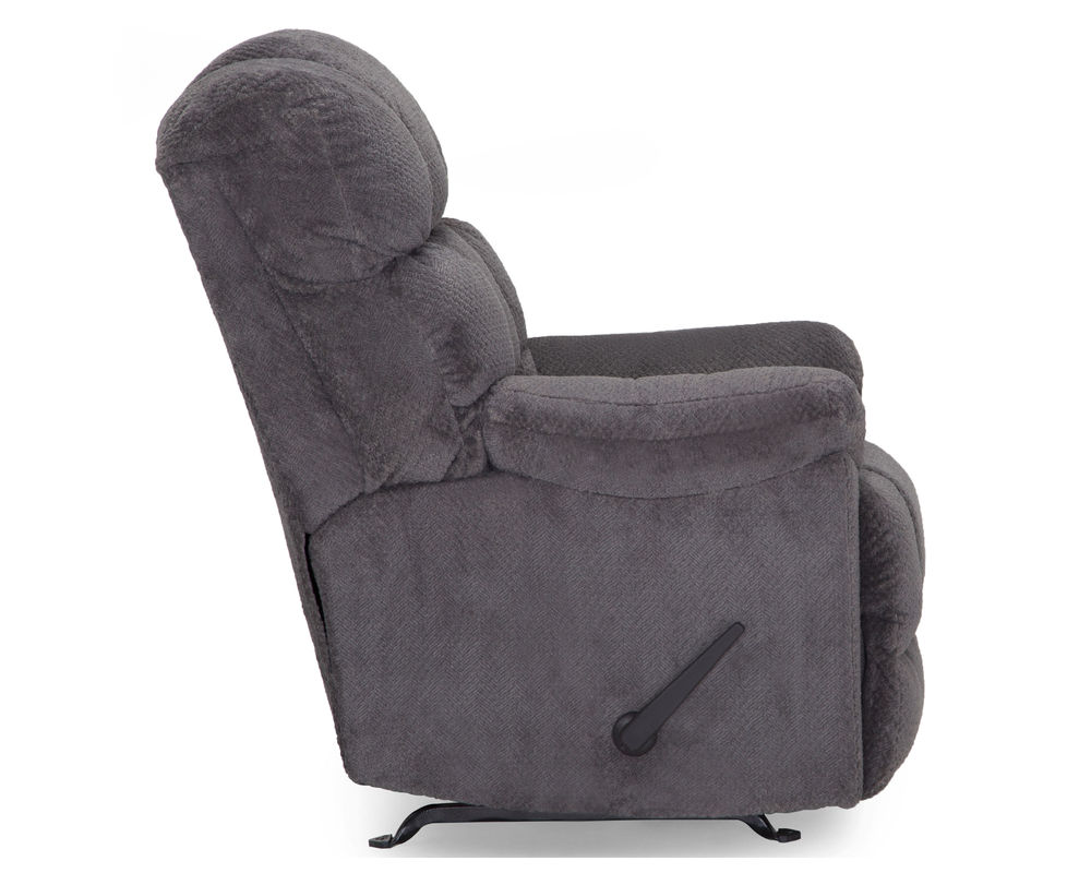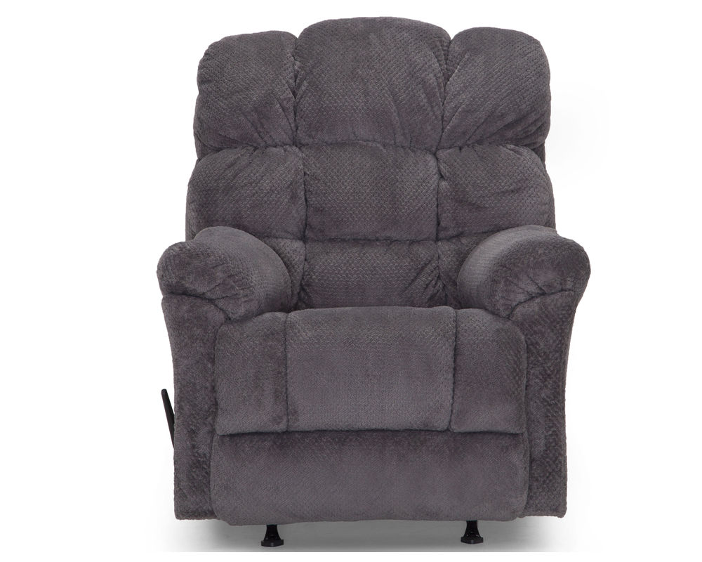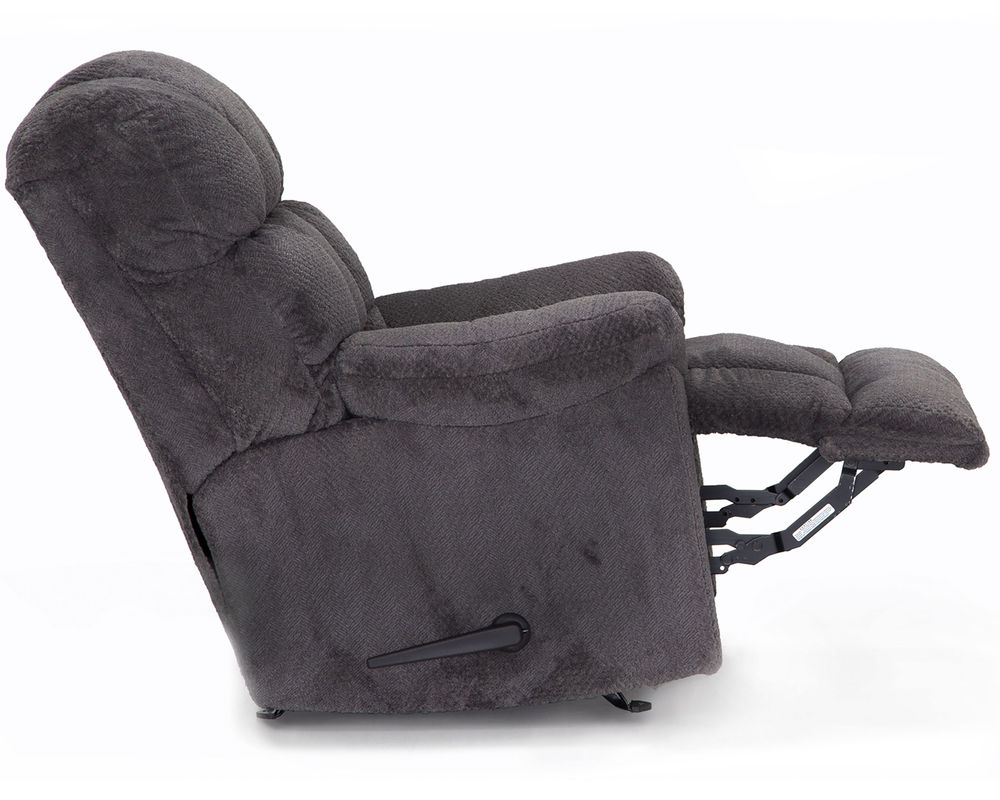 The Beasley is a manual rocker recliner with an overstuffed back design that provides comfort galore. This rocker recliner is offered in a soft, 100% polyester fabric available in Charcoal and Chocolate.