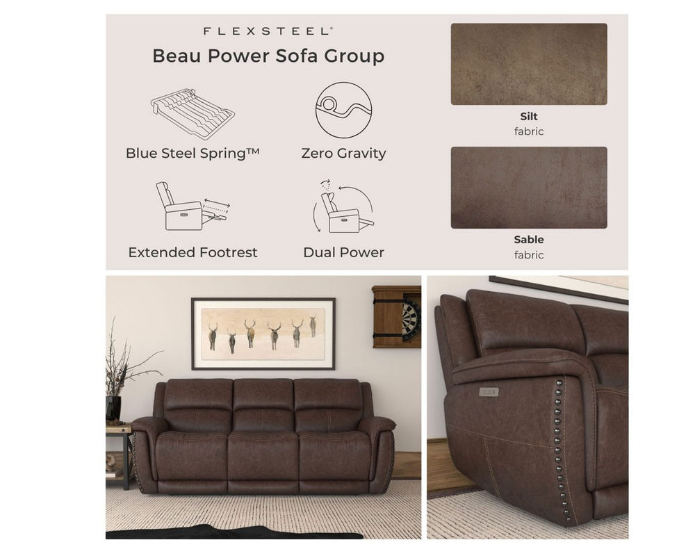 Beau Power Reclining Sofa with Power Headrests