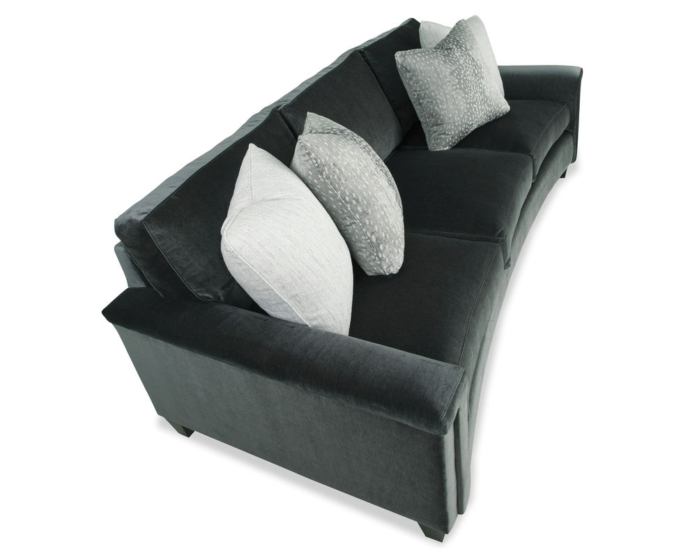 The Bel Air 7360 Sofa is a unique blend of elegant design and unparalleled comfort. Its dramatic curved front is a standout feature that will instantly elevate any living space. The distinctive padded arm treatment adds a touch of luxury, while the tapered legs bring a hint of sophistication.