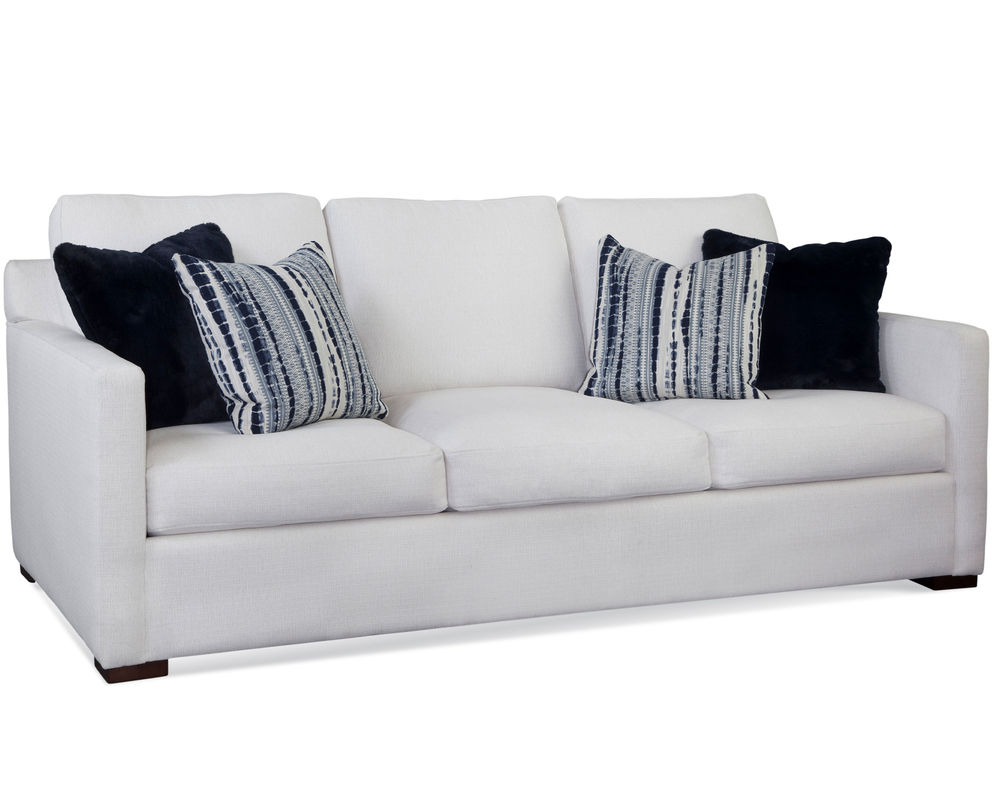 The styling of the Bel Air sofa will fit right in to a modern or casual. Features squared arm with Dacron soft back cushions. The seat cushion are Comfort Plus - minimum 1.8 density high resilience, high performance polyurethane foam provides this cushion with extra support, durability and constant comfort. Over 800 fabrics and 20 wood finishes available.
