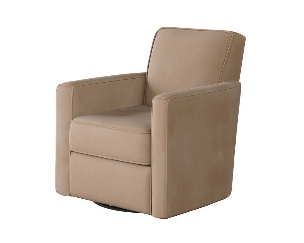 21-02G-C Swivel Glider The swivel glider features sleek track arms outlined with a small welt to give it flair and definition.