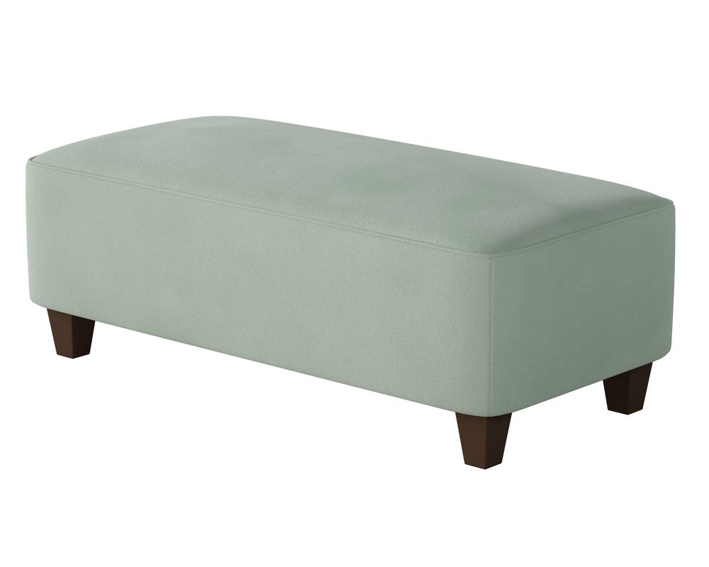 Introducing the stylish and functional Bella Eucalyptus Rectangular Cocktail Ottoman! This versatile piece is perfect for any living room, family room, or child's playroom. Its padded sides and top provide a safe and comfortable option for children to sit on or play around on.