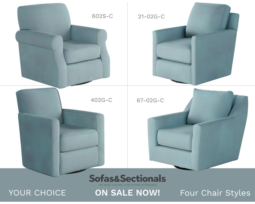 But that's not all—these swivel gliders offer a 360-degree turn and an easy rocking motion, giving you a more comprehensive range of motion and making them the perfect spot for relaxation. Whether you want to read a book, watch TV, or unwind after a long day, these swivel gliders provide the ultimate comfort and convenience. Note - the 602S-C is a swivel chair only.