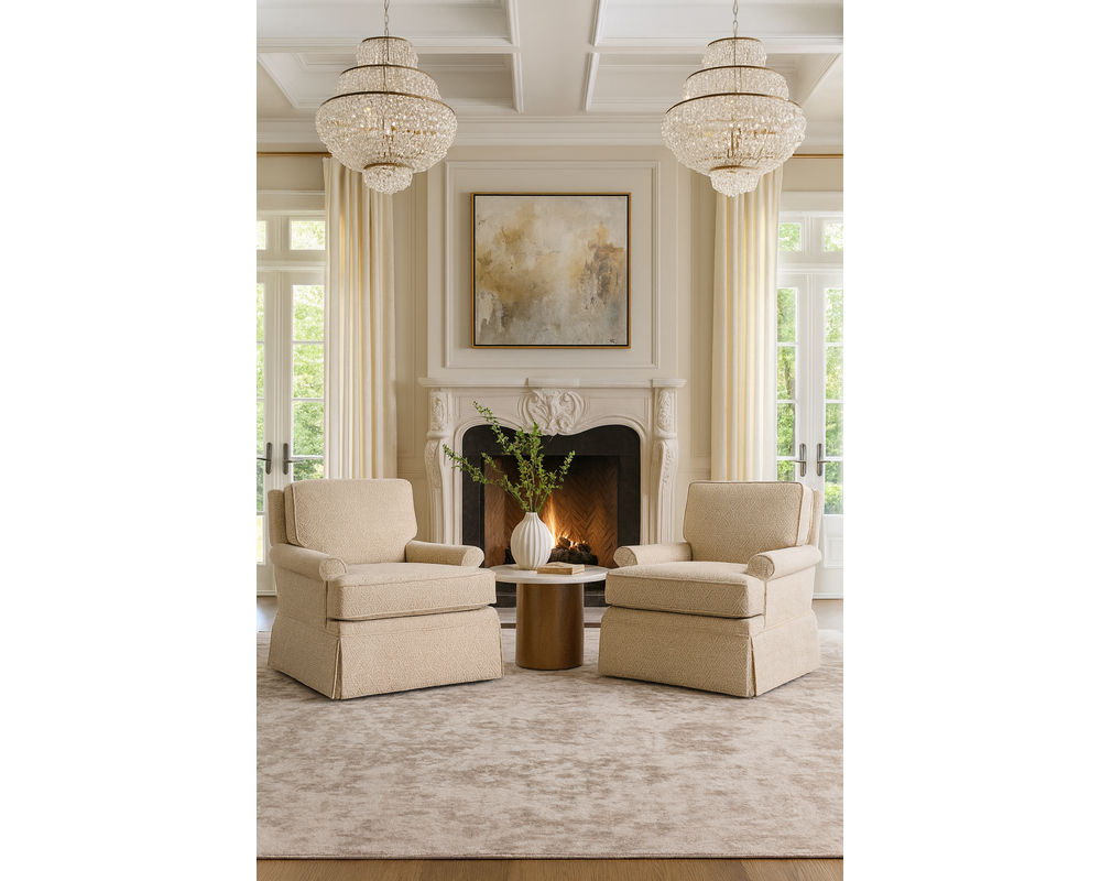 The Belmont Chair brings classic elegance into your home with its skirted base and gently rolled arms. Available as a standard chair, swivel chair, or swivel glider, it offers both style and versatility. The swivel glider provides smooth 360° rotation and soothing forward-back motion, making it the perfect spot to relax at the end of the day.