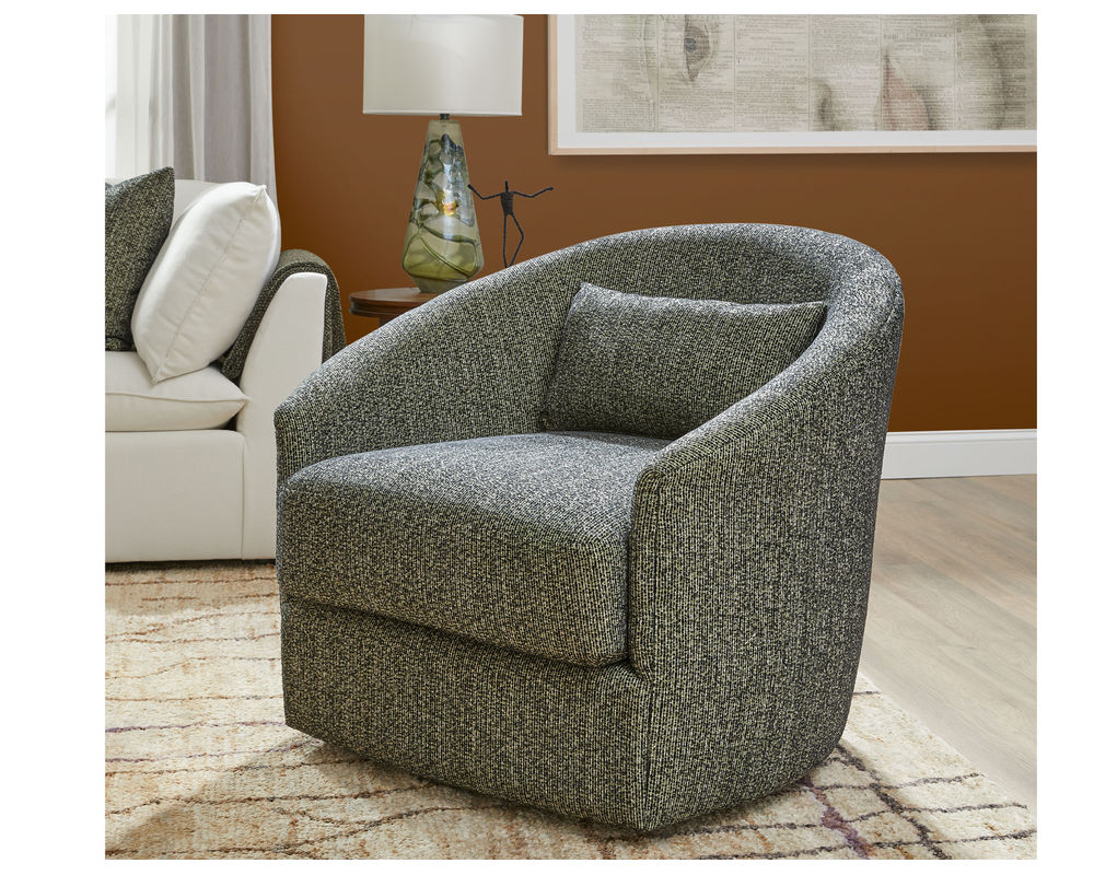 From Sofas and Sectionals the Benjamin Swivel Chair - the perfect addition to any modern living space! This chair boasts a unique blend of contemporary style and cozy comfort, making it the ultimate seating option for your home.
