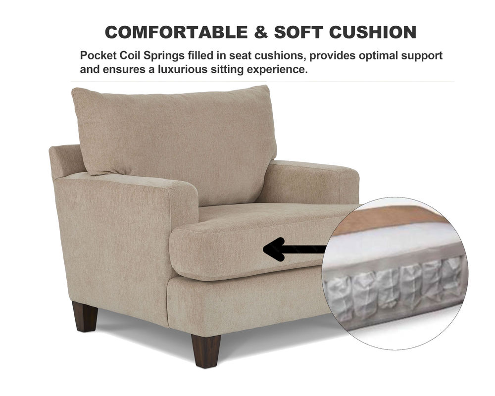 • Extra thick, removable and reversible Comfort Coil seat cushion contains a pocketed spring system, designed to keep its shape and provide a consistent feel over time