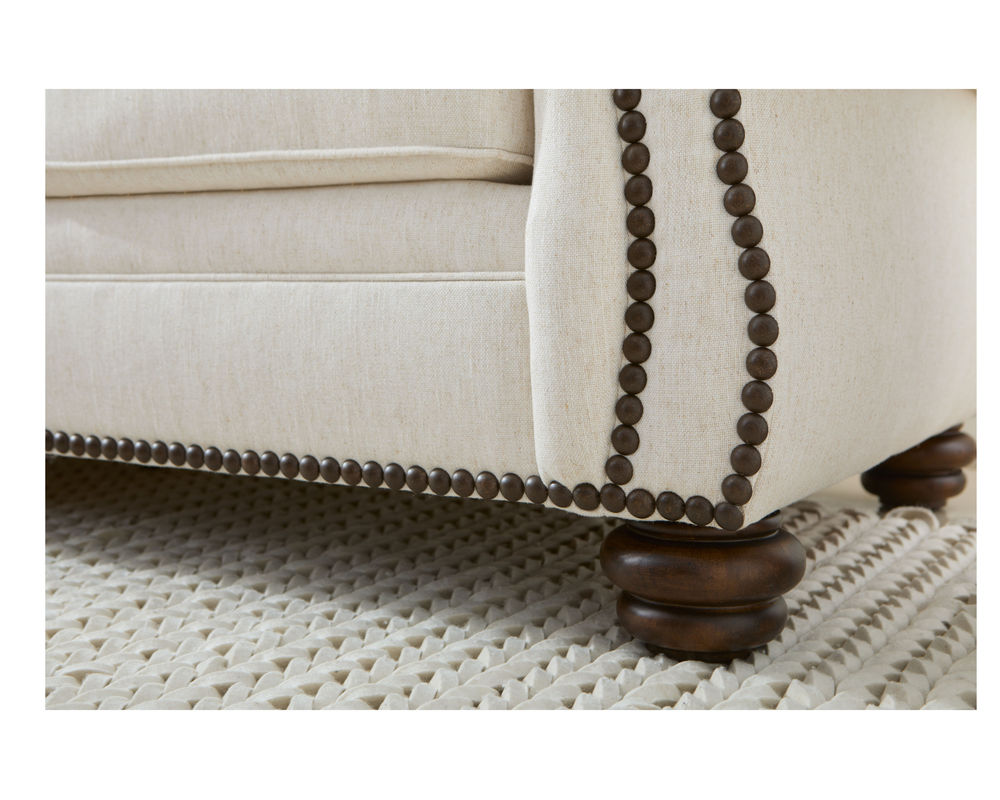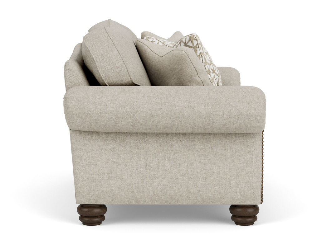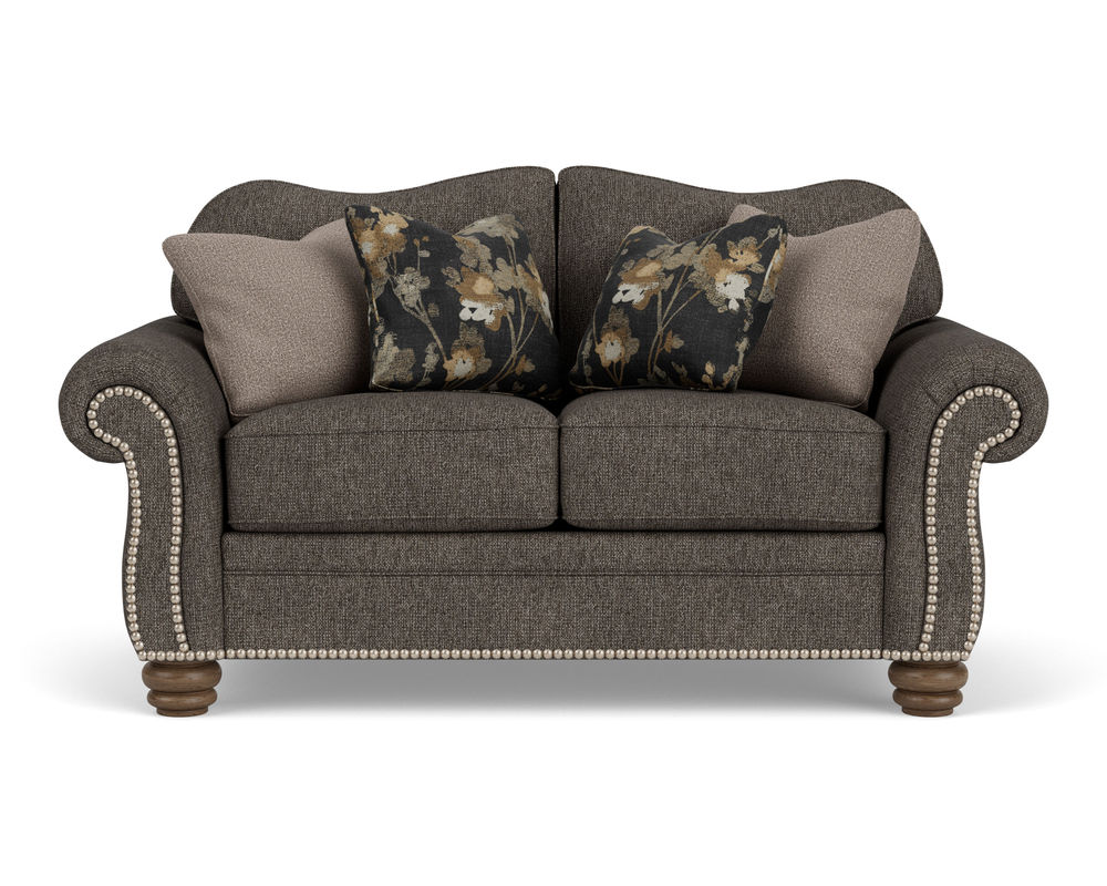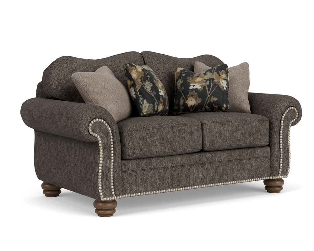 Flexsteel Bexley 8646 Nailhead Loveseat brings you traditional style with modern construction. Its timeless frame is highlighted by an elegantly curved back, plush rolled arms, and bun feet. Bexley's extraordinary construction offers a lifetime of comfort with soft, supportive cushions. To top off this classic design, it's detailed with nailhead trim. Choose from over 100 performance and standard fabrics that will make this loveseat the perfect addition to your living room. With its timeless style, the Flexsteel Bexley 8646 Nailhead Loveseat will provide ageless comfort for years to come.
