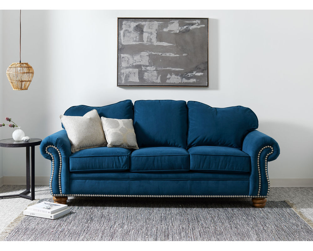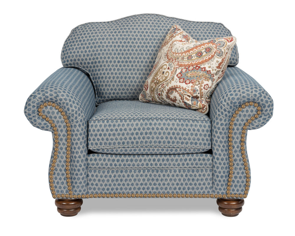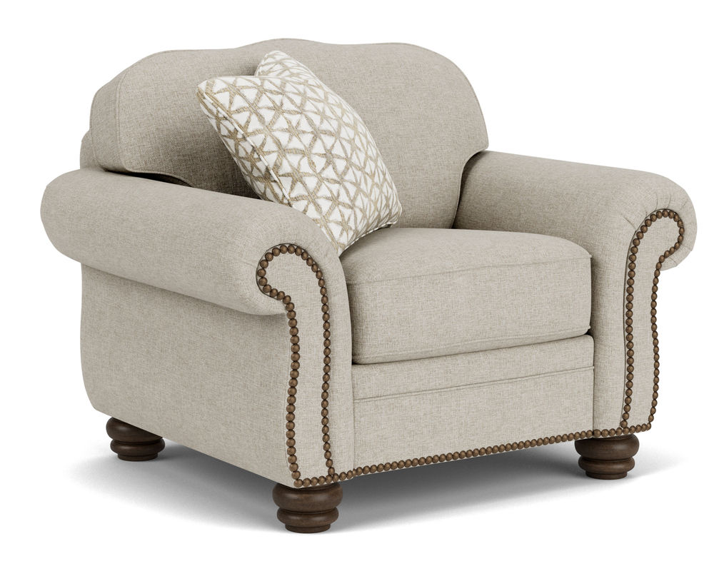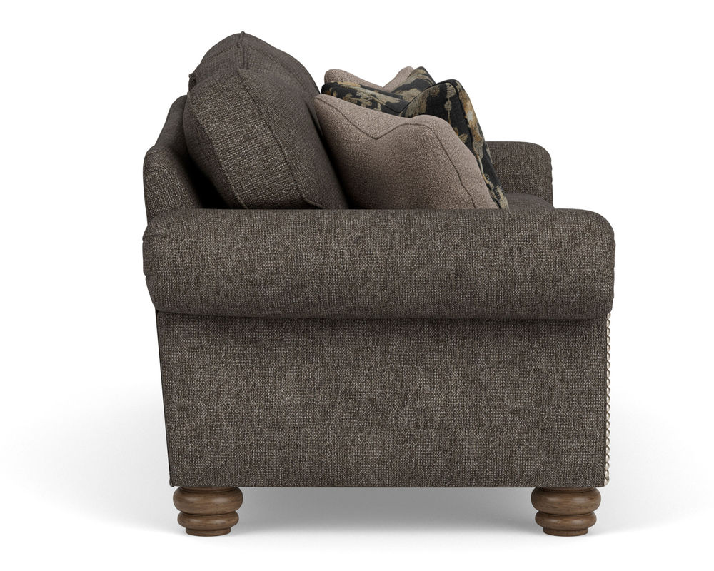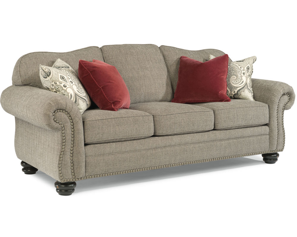 Flexsteel Bexley 8646 Nailhead Loveseat brings you traditional style with modern construction. Its timeless frame is highlighted by an elegantly curved back, plush rolled arms, and bun feet. Bexley's extraordinary construction offers a lifetime of comfort with soft, supportive cushions. To top off this classic design, it's detailed with nailhead trim. Choose from over 100 performance and standard fabrics that will make this loveseat the perfect addition to your living room. With its timeless style, the Flexsteel Bexley 8646 Nailhead Loveseat will provide ageless comfort for years to come.