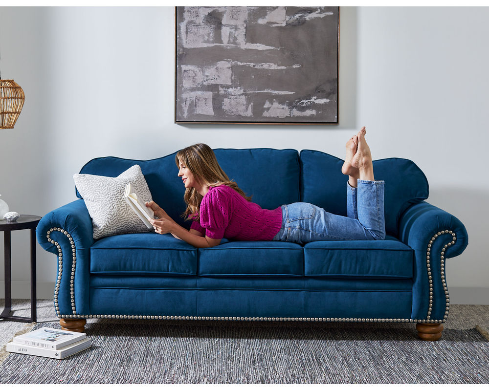 At the heart of our upholstered seating is our Blue Steel Spring – a patented ribbon of steel that provides unmatched comfort and never needs replacing.