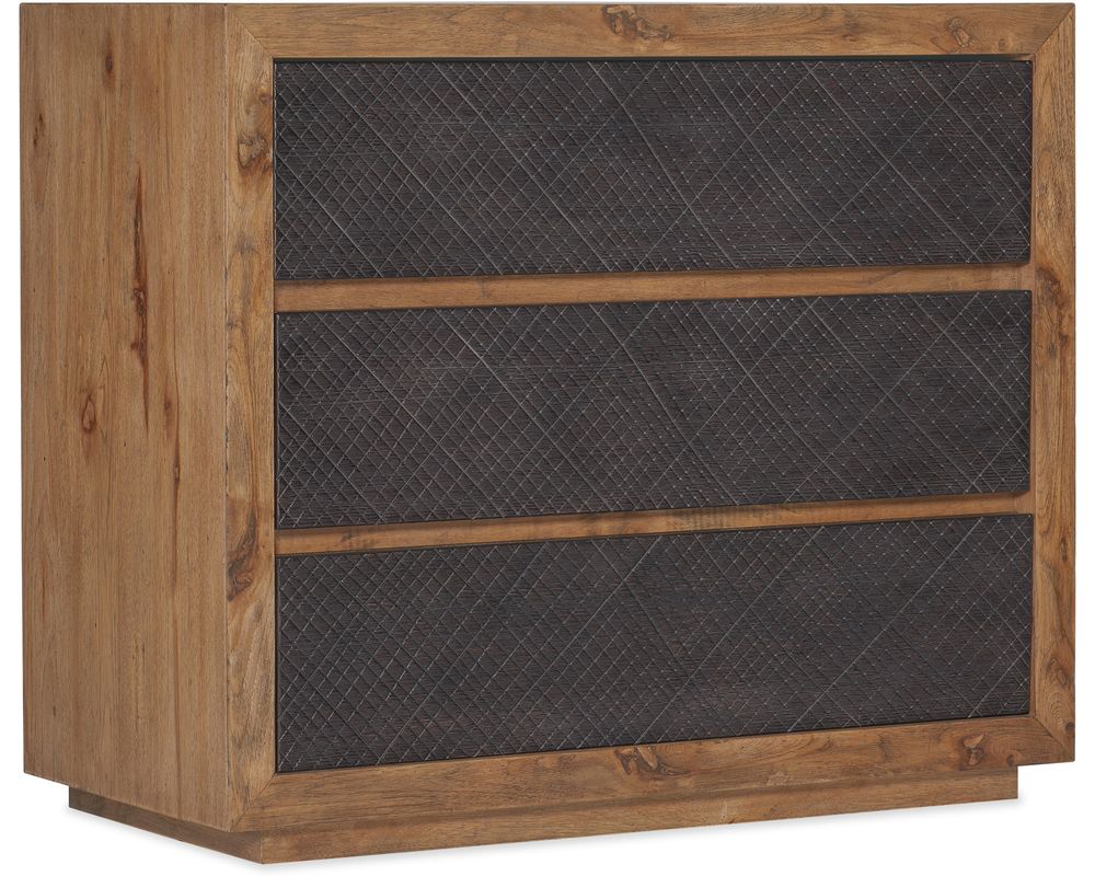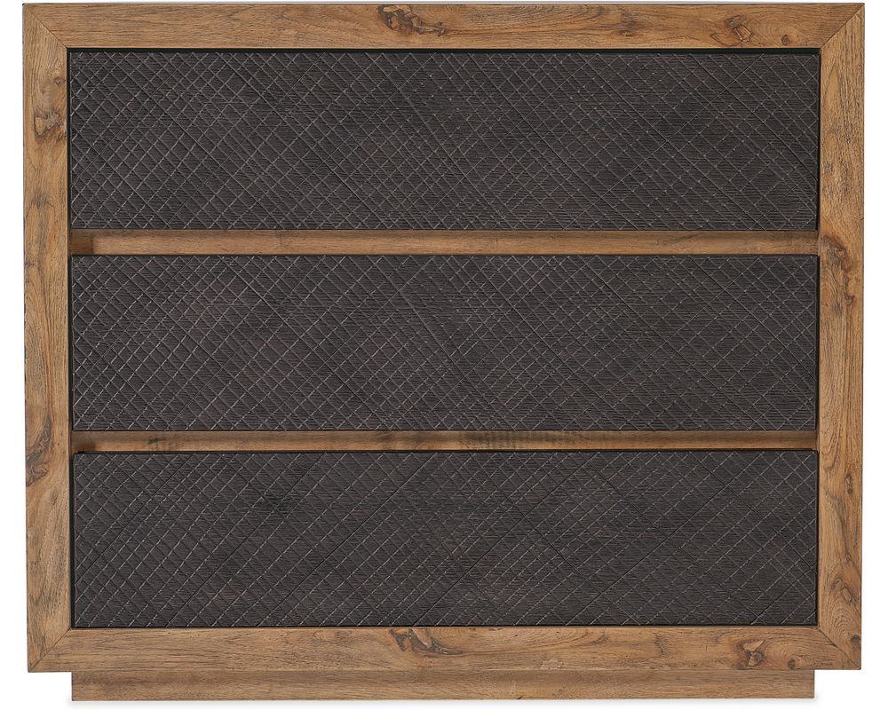 From Sofas and Sectionals.com: Introducing the Big Sky Bachelor Chest, a stunning piece of furniture that combines classic design elements with modern functionality; crafted with the utmost attention to detail and durability in mind, this chest features a Vintage Natural wood case that exudes a timeless charm. The drawer fronts are adorned with a crosshatch texture in a rich charcoal Furrowed Bark finish, creating a striking contrast that adds depth and character to the piece.