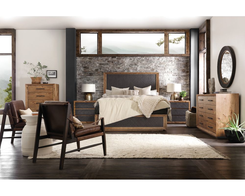 The natural beauty and near-mystical experience of the American wilderness inspires a spirited collection from Hooker Furniture, a celebration of dramatic vistas and the freedom to roam, a land of rough-hewn timber and towering snow-capped peaks, boundless plains, and calm, clear mountain lakes. Hooker brings home a dream of wide-open spaces and a life lived in tandem with iconic landscapes with furnishings that evoke the weight, heft, and heritage of post and beam construction, the mark and artistry of true craftspeople, and substantive, thoughtful designs right for today. Watch for warm, rustic, hickory veneer and rich finishes like charred timber, dusk, and avalanche, organic textures like burlap and top grain leather, forged hardware, and classic moldings for the traditionalist. Those with a more modern bent will be thrilled by the clean lines of waterfall edges, crosshatch surfaces, and planking details that speak to authenticity and the hand of the maker. These elements bring a contemporary twist to the collection, adding excitement and a sense of the future. Welcome to the peaceful, easy feeling of Big Sky. It’s time to breathe.