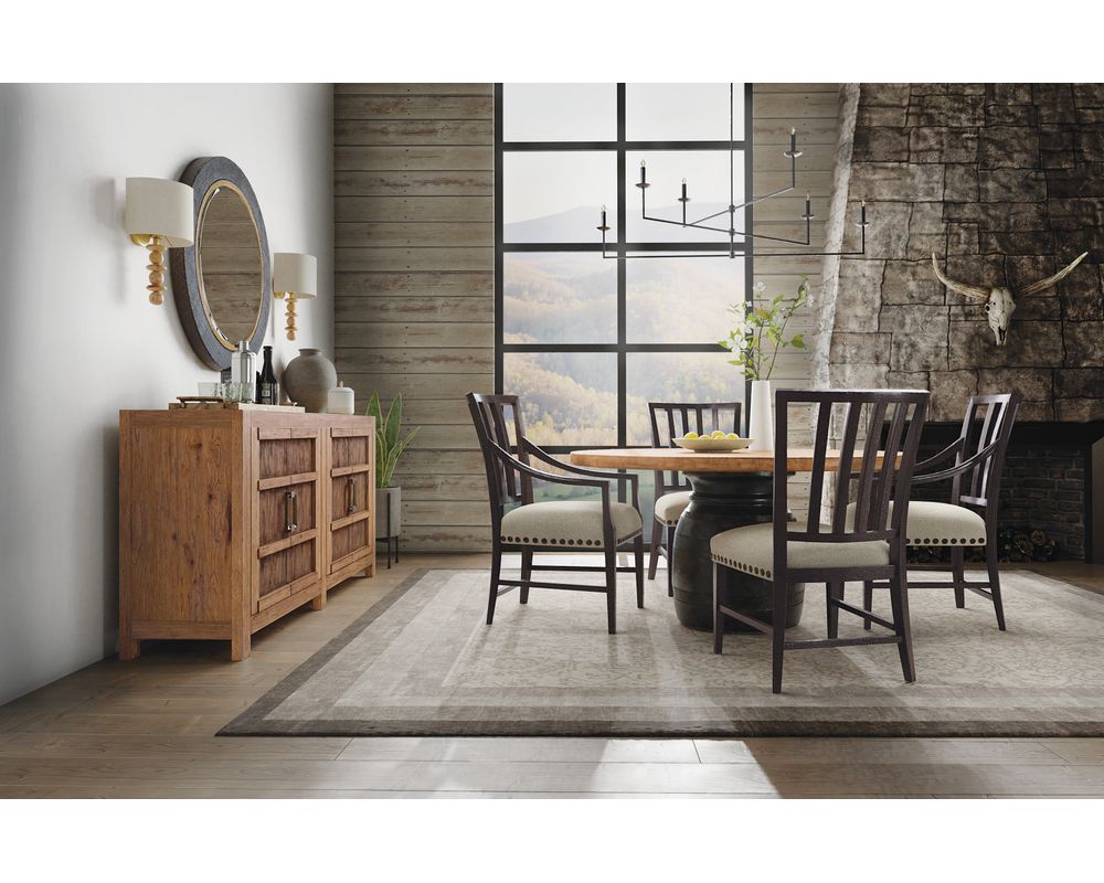 The natural beauty and near-mystical experience of the American wilderness inspires a spirited collection from Hooker Furniture, a celebration of dramatic vistas and the freedom to roam, a land of rough-hewn timber and towering snow-capped peaks, boundless plains, and calm, clear mountain lakes. Hooker brings home a dream of wide-open spaces and a life lived in tandem with iconic landscapes with furnishings that evoke the weight, heft, and heritage of post and beam construction, the mark and artistry of true craftspeople, and substantive, thoughtful designs right for today. Watch for warm, rustic, hickory veneer and rich finishes like charred timber, dusk, and avalanche, organic textures like burlap and top grain leather, forged hardware, and classic moldings for the traditionalist. Those with a more modern bent will be thrilled by the clean lines of waterfall edges, crosshatch surfaces, and planking details that speak to authenticity and the hand of the maker. These elements bring a contemporary twist to the collection, adding excitement and a sense of the future. Welcome to the peaceful, easy feeling of Big Sky. It’s time to breathe.